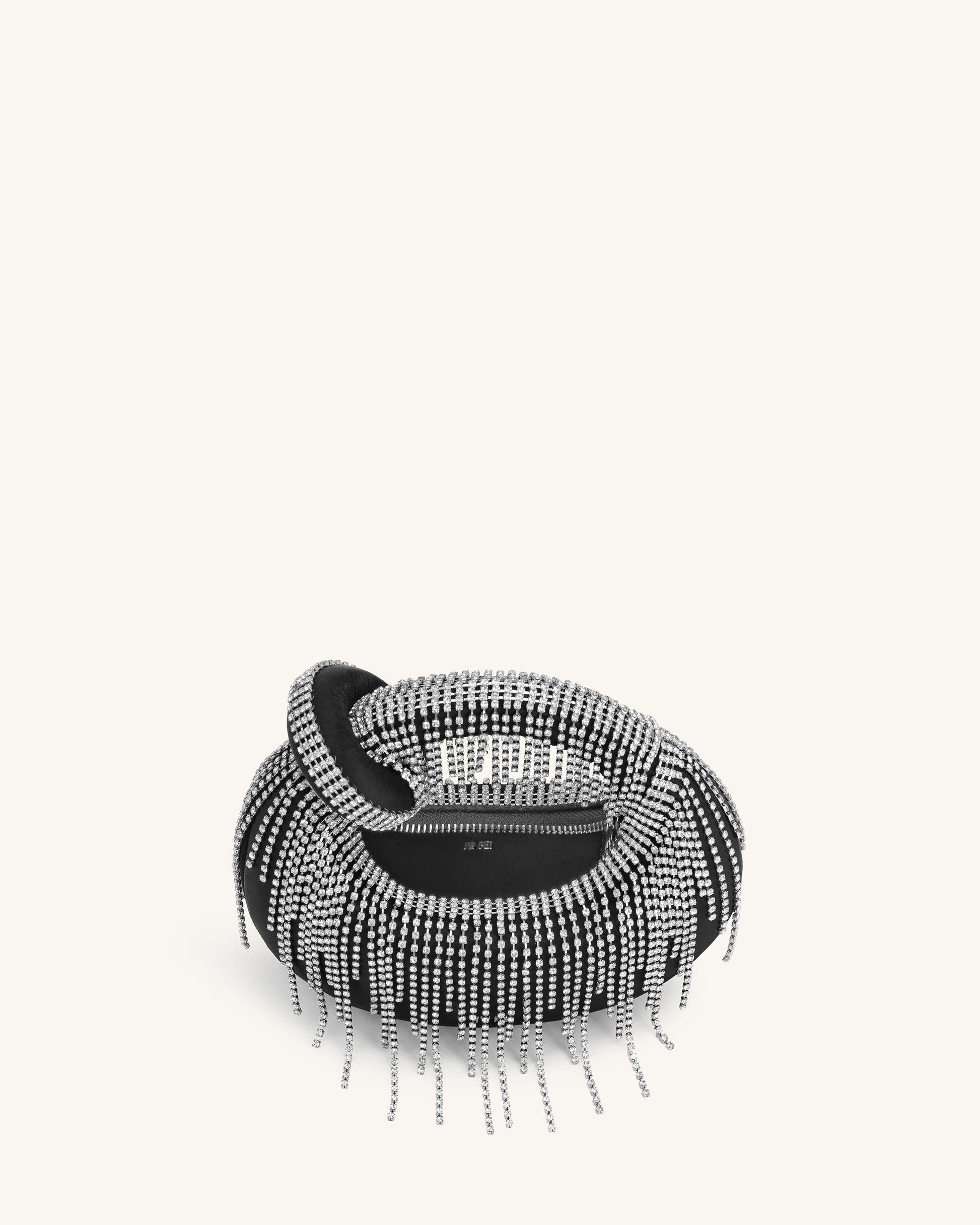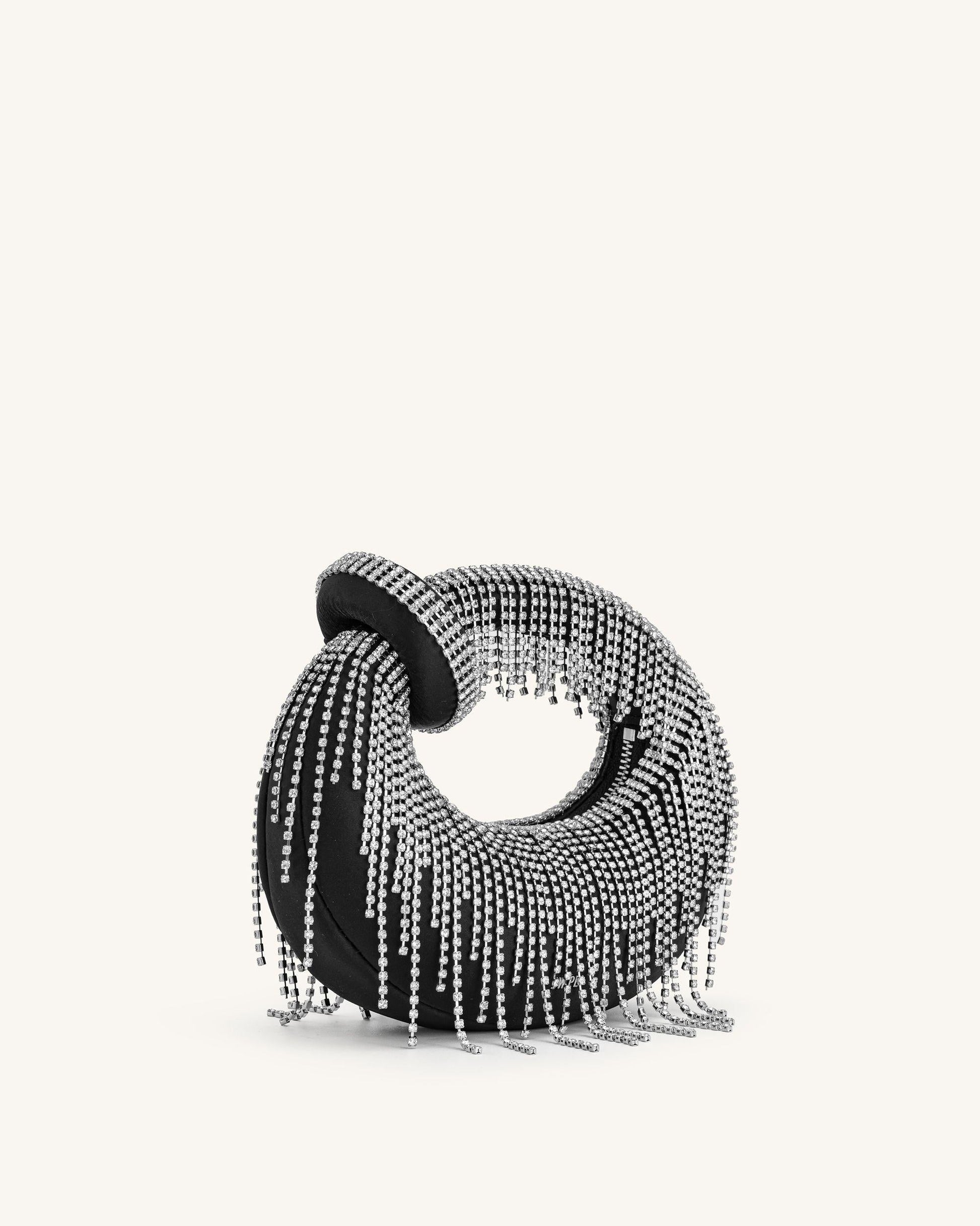 Abacus Satin Artificial Crystal Mini Top Handle Bag - Black
