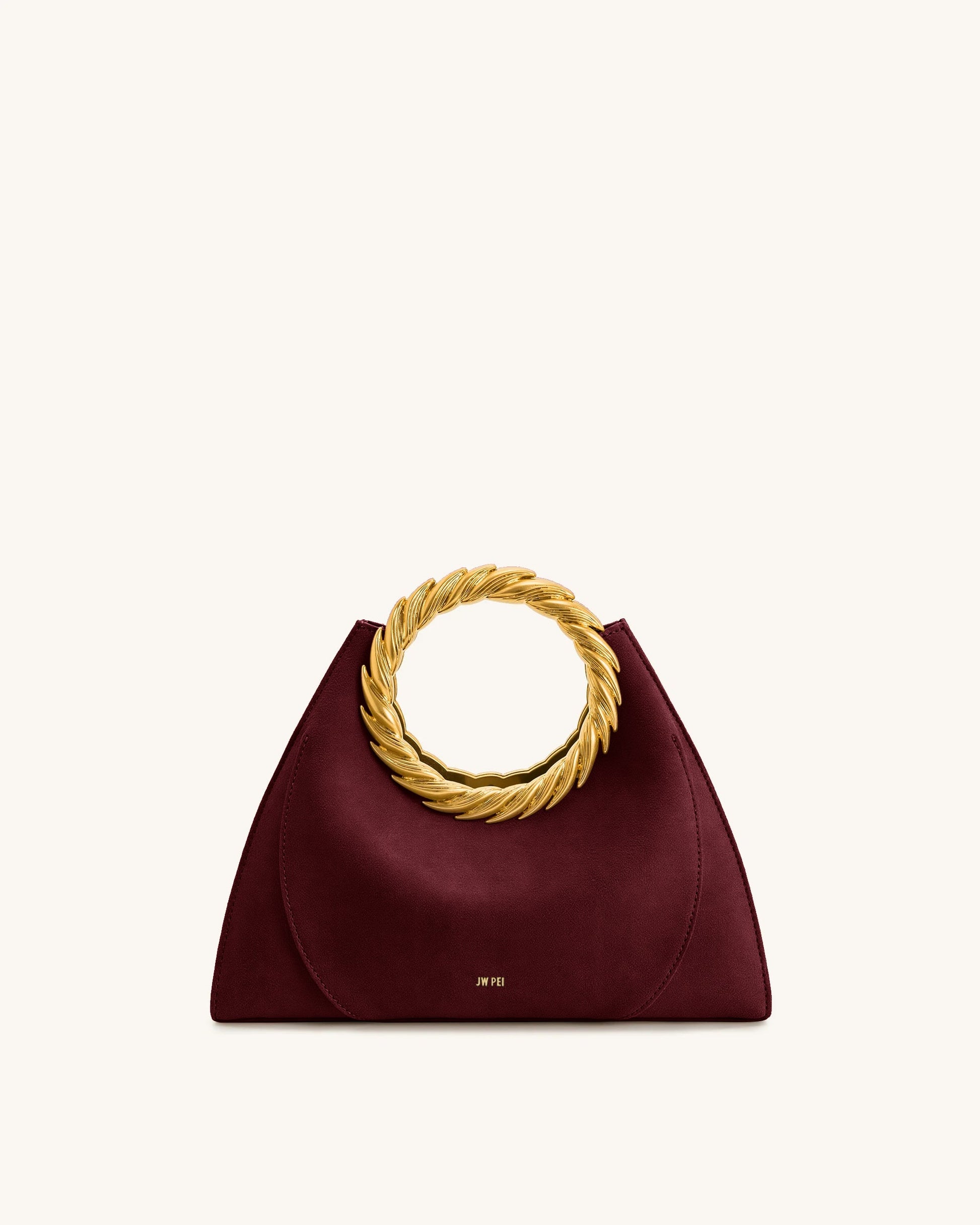 Amiya Leaf Handle Faux Suede Sculpture Bag - Merlot Red