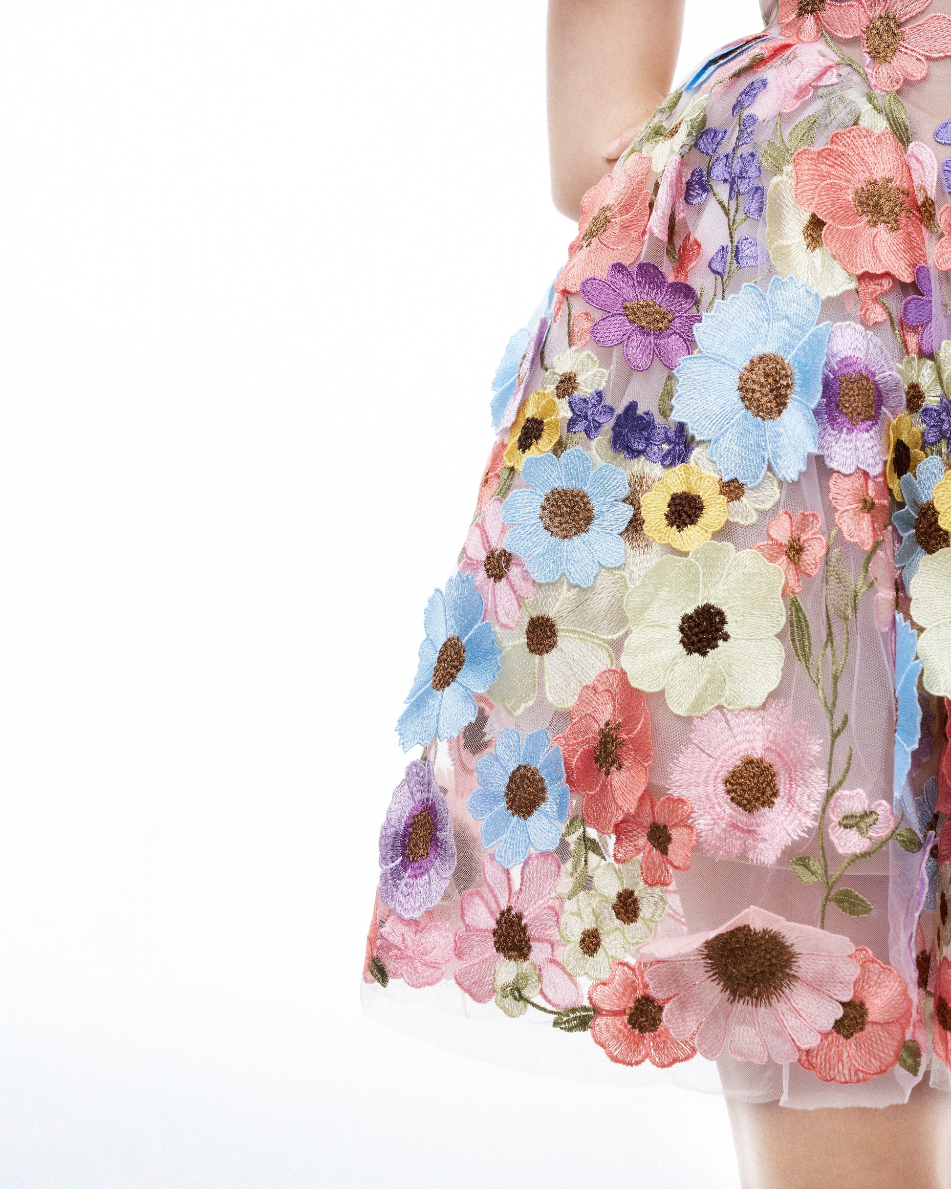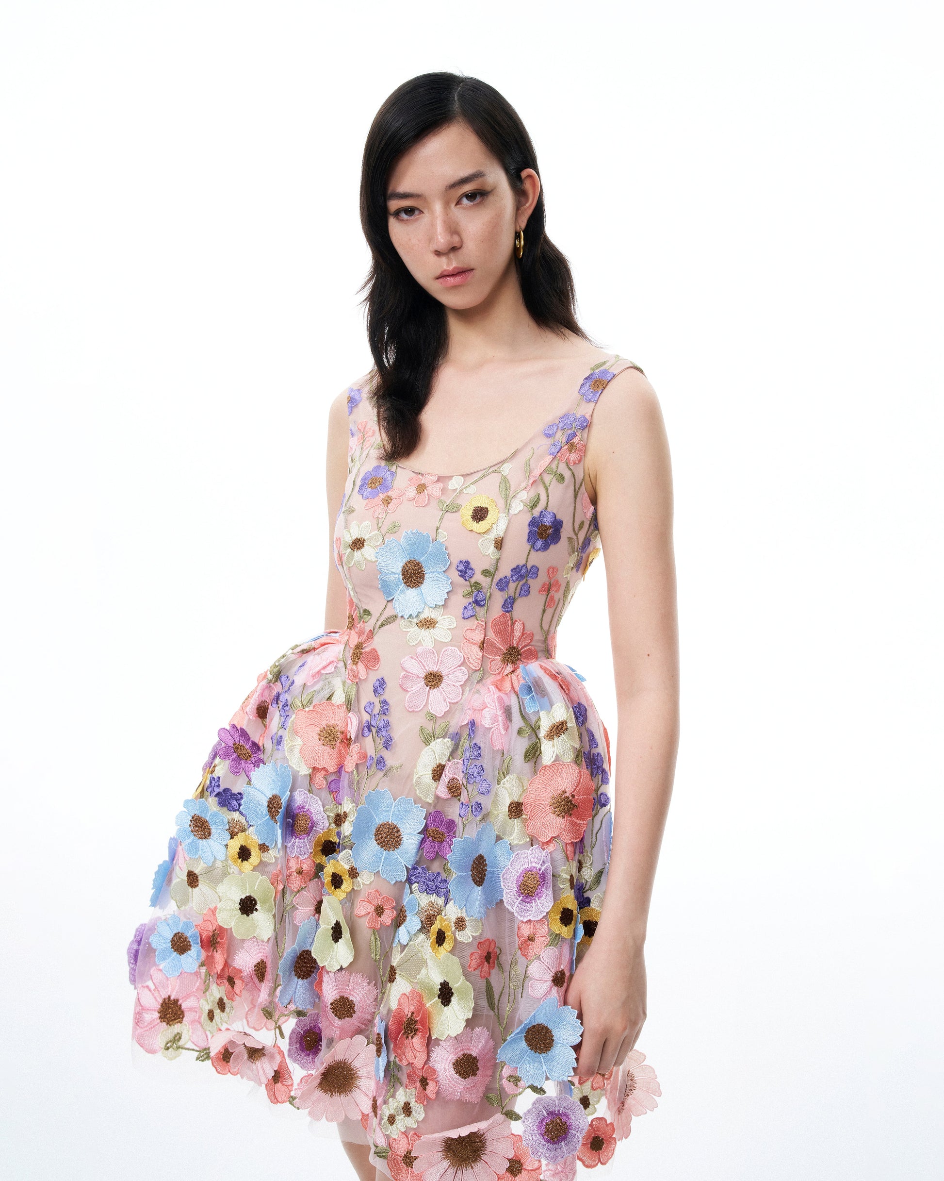 Aurora 3D Floral Embroidered Mini Dress - Pastel Multi