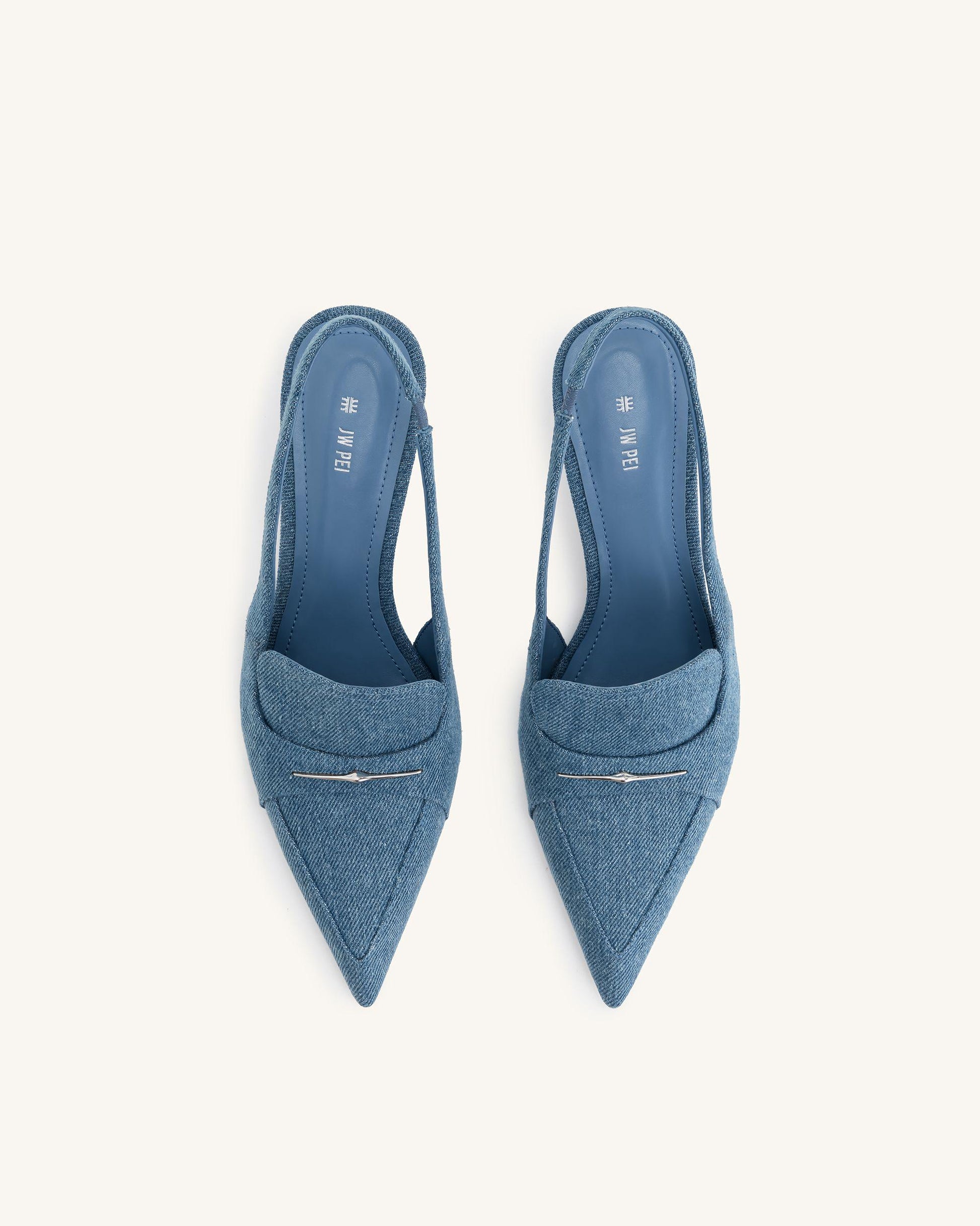 Carla Denim Kitten Heel Pumps - Blue