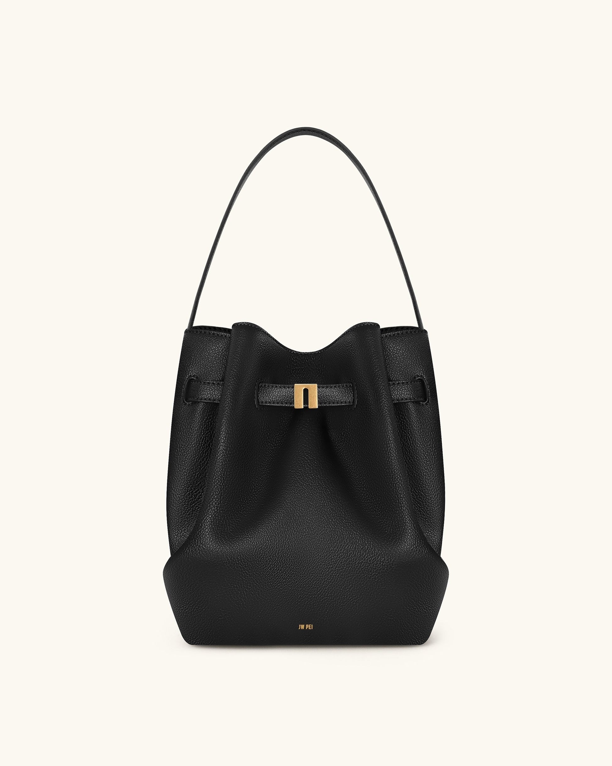 Clara Lock Accent Bucket Shoulder Bag - Black