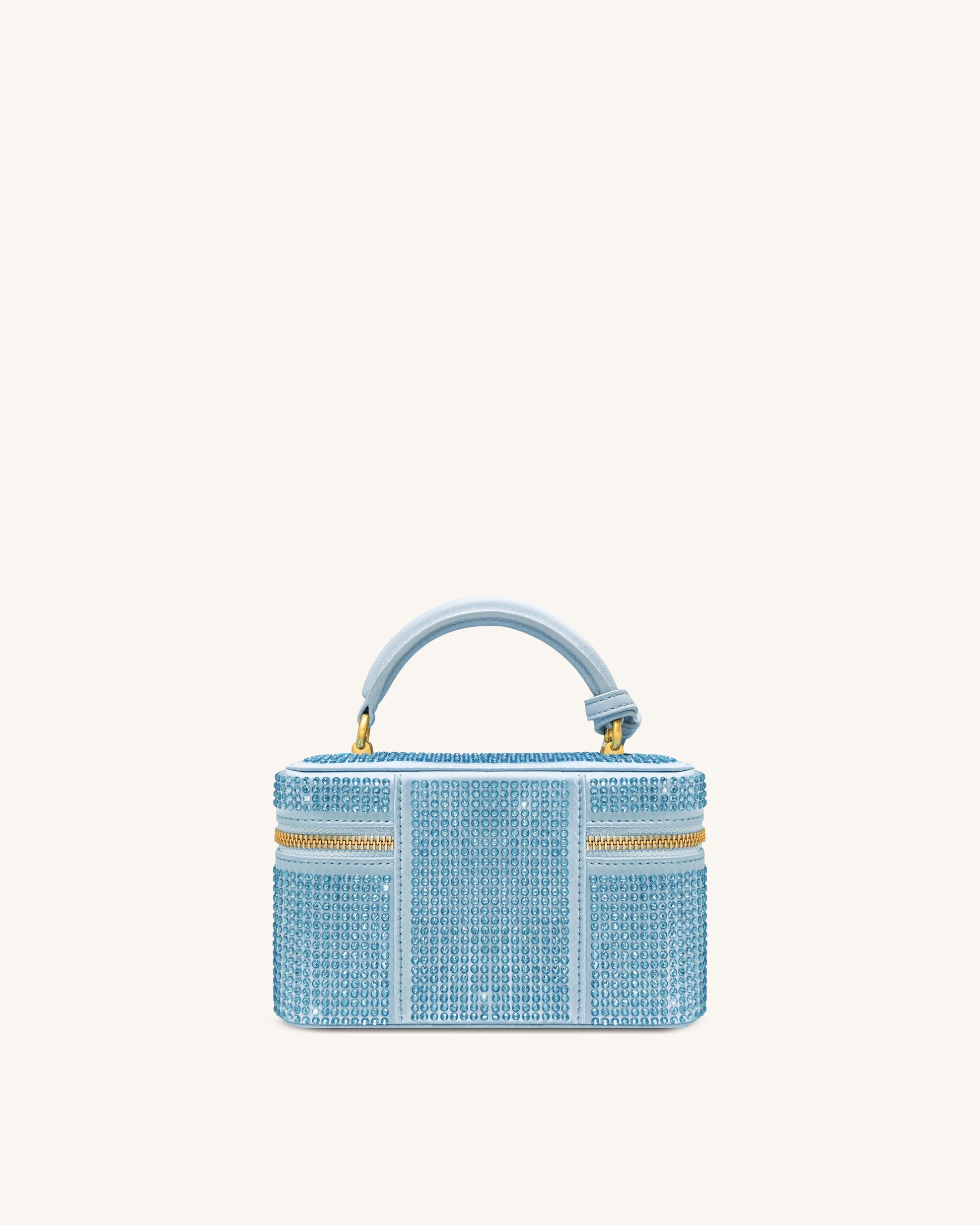 Cleo Artificial Crystal Box Shape Top Handle Bag - Blue
