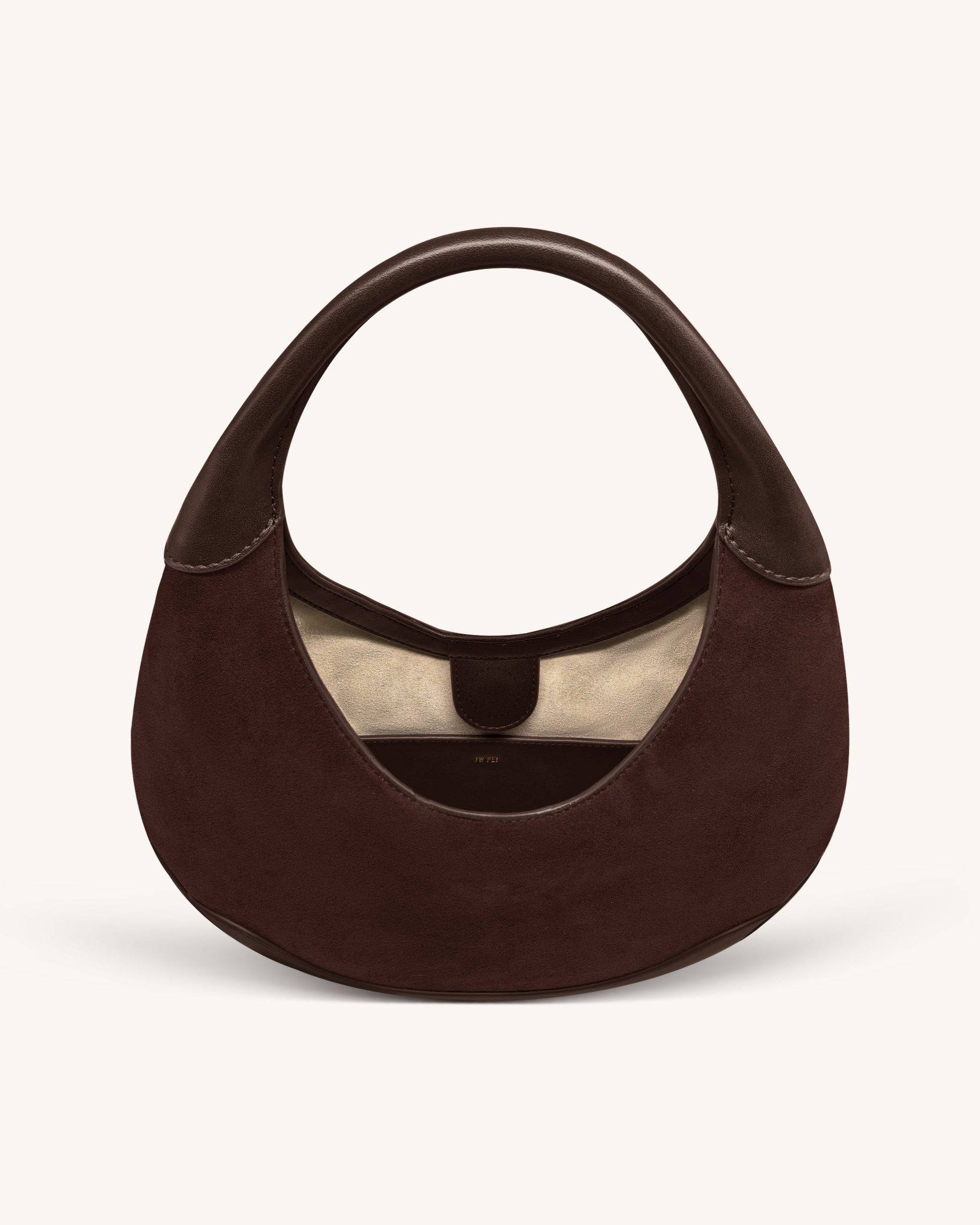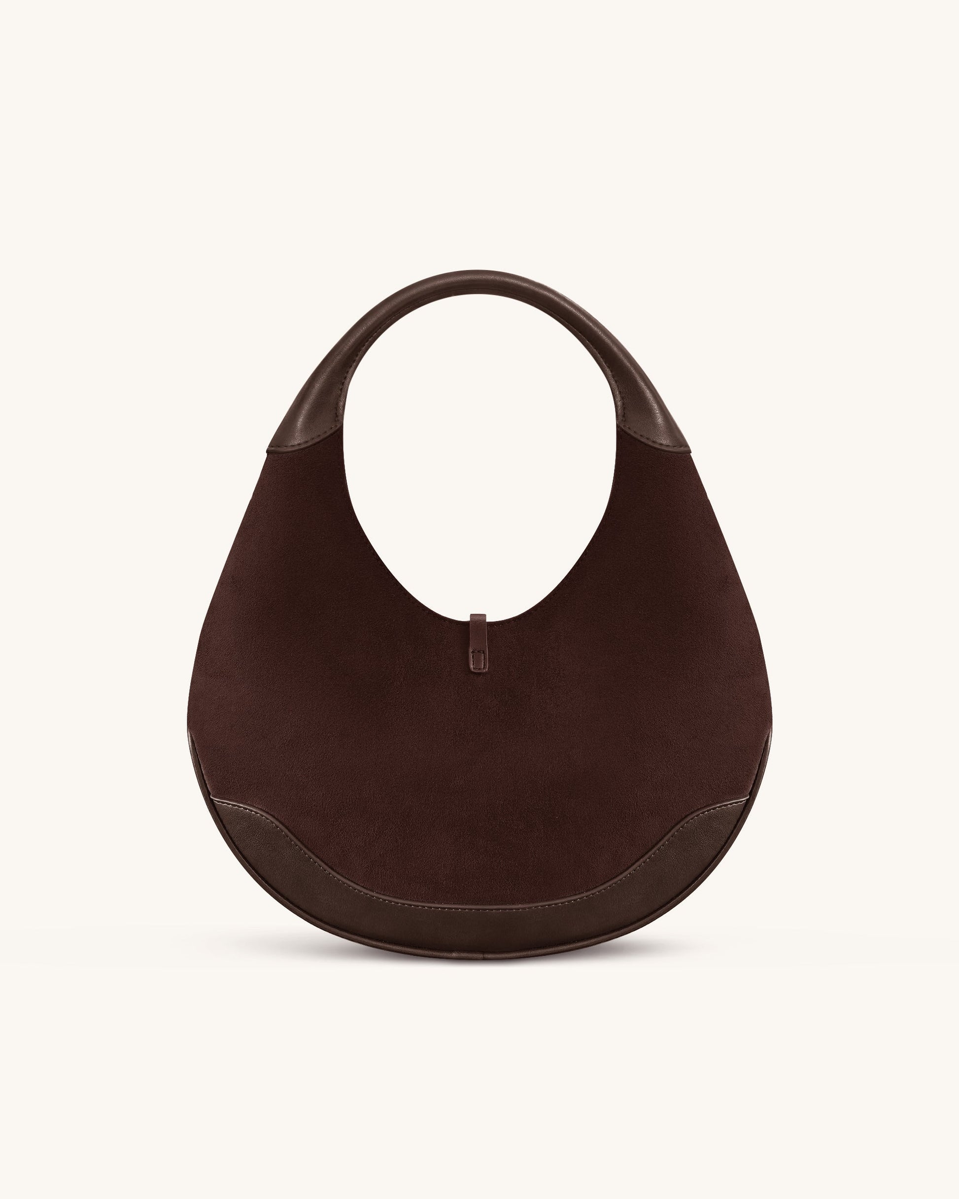 Colette Faux Suede Crescent Hobo Bag - Dark Brown