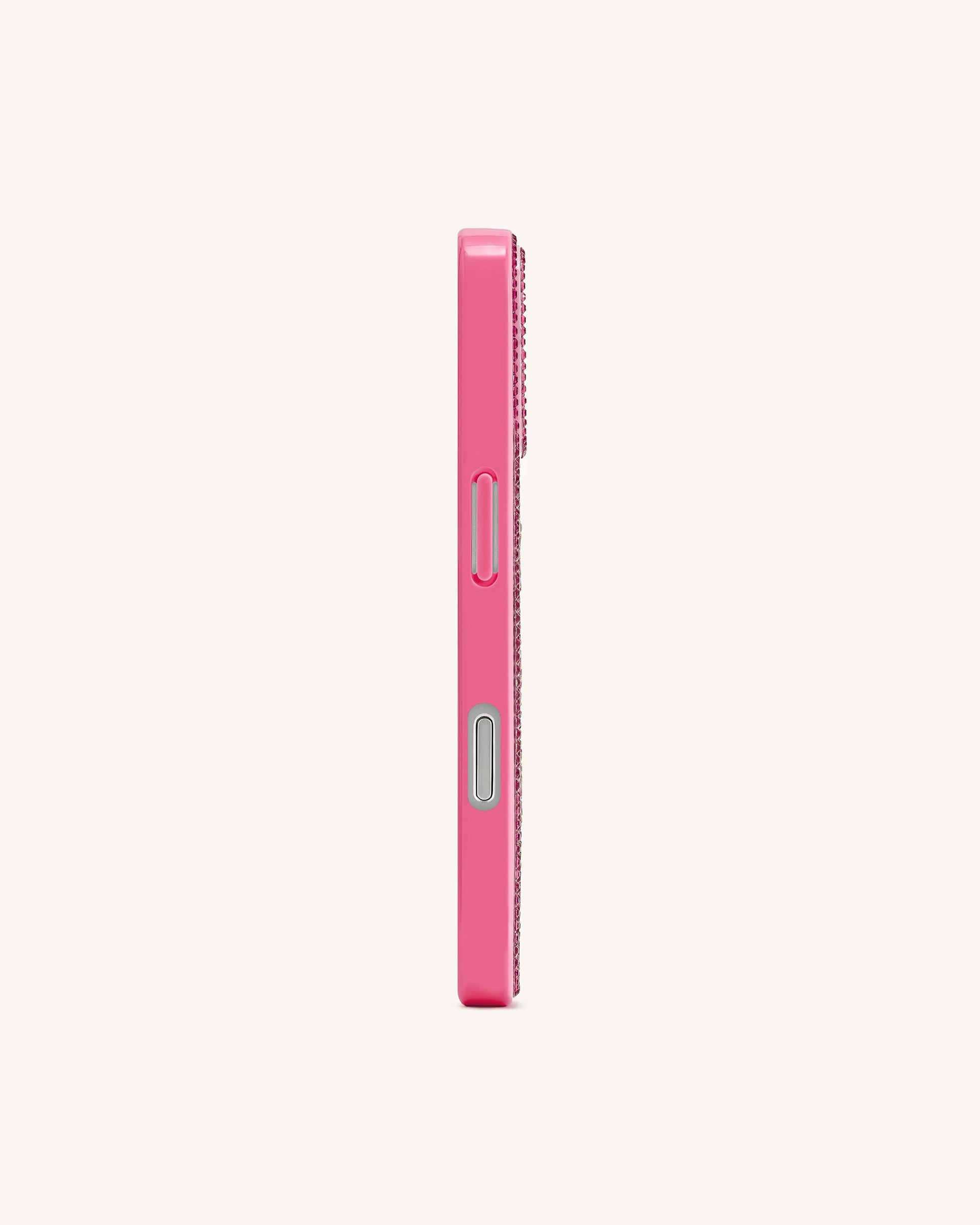 This phone case features a bold “Don’t touch me!” message in white artificial crystals on a shimmering pink rhinestone background. Stylish and expressive, it also offers basic device protection and enhanced grip.Each phone case is handmade, so slight variations in craftsmanship may occur with every product.