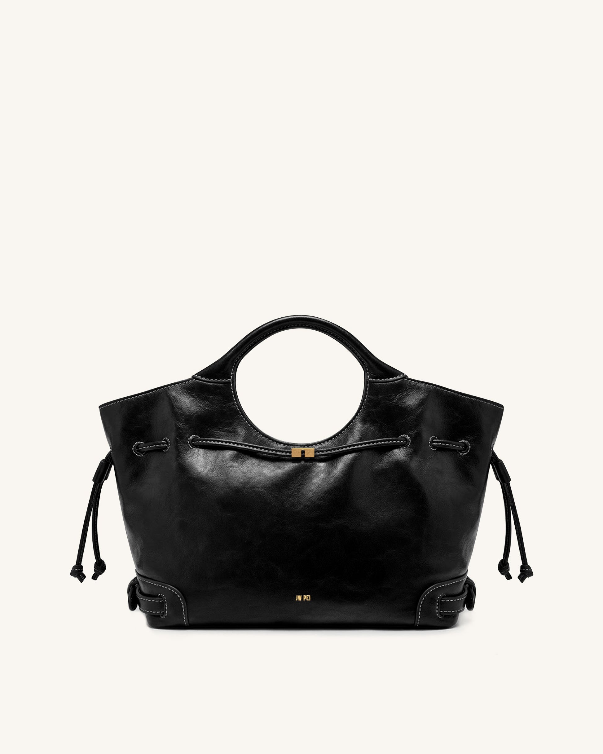 Elara Waxed Vegan Leather Drawstring Tote Bag – Black