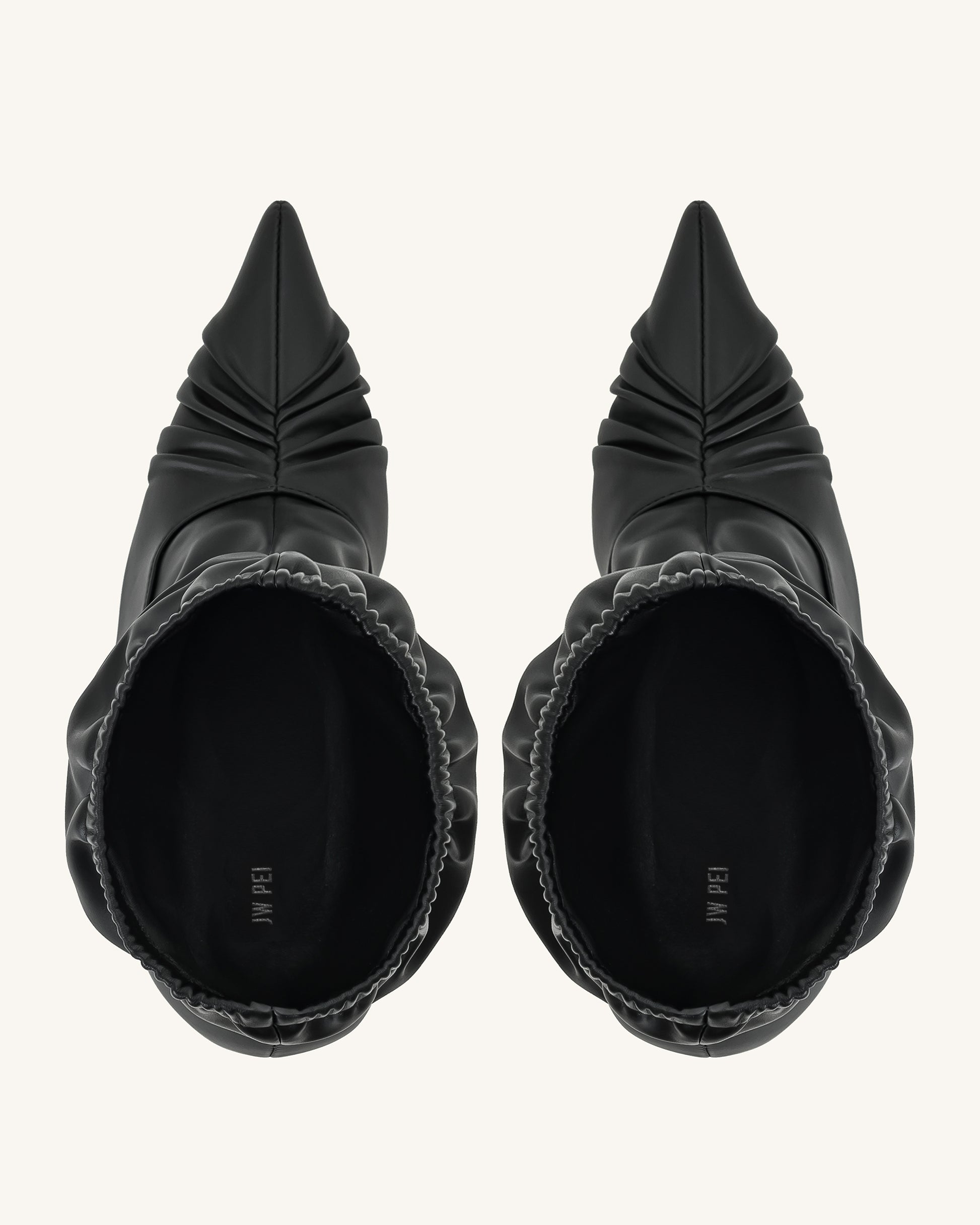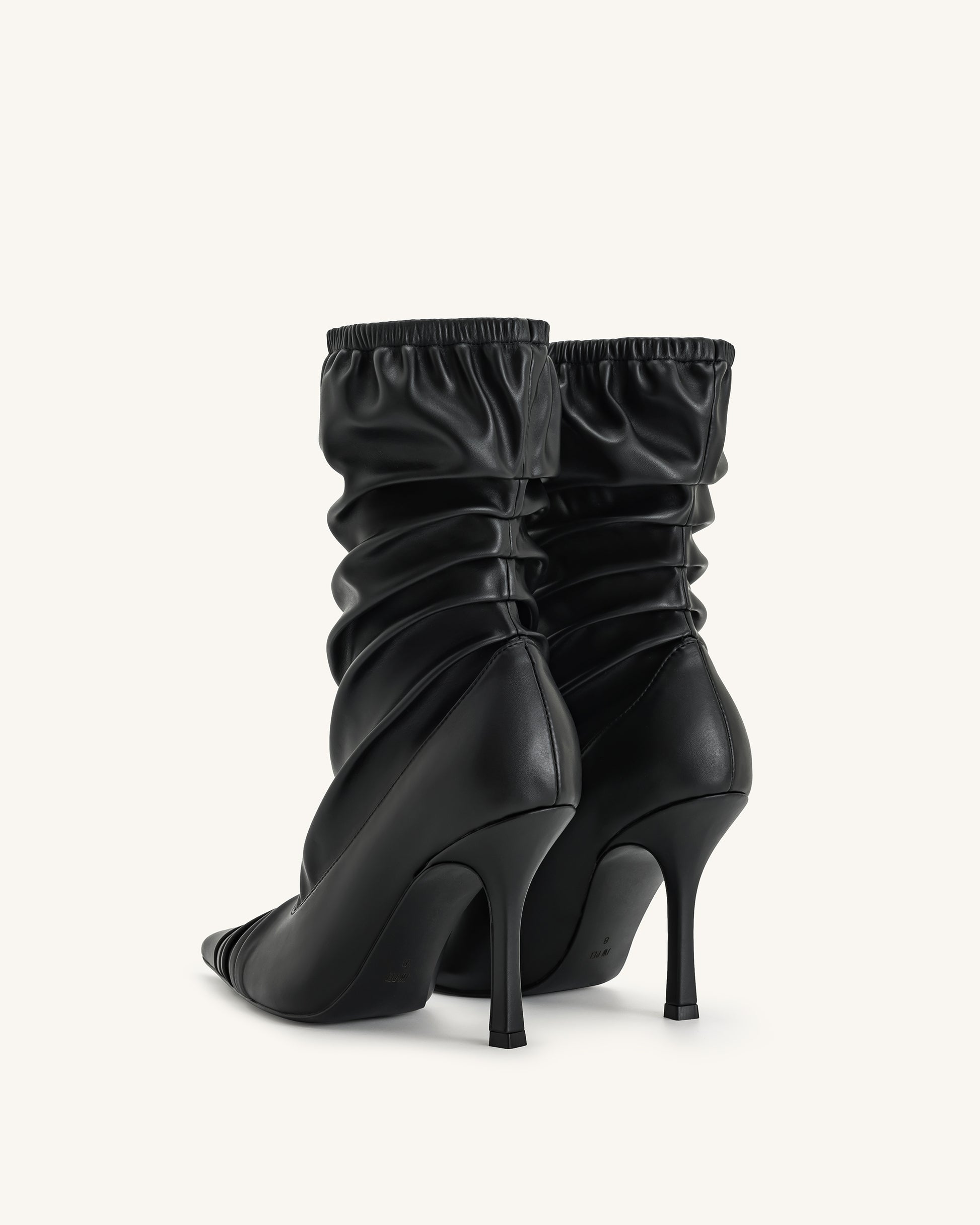 Joanne Paneled Detailing leather Ankle Boots - Black