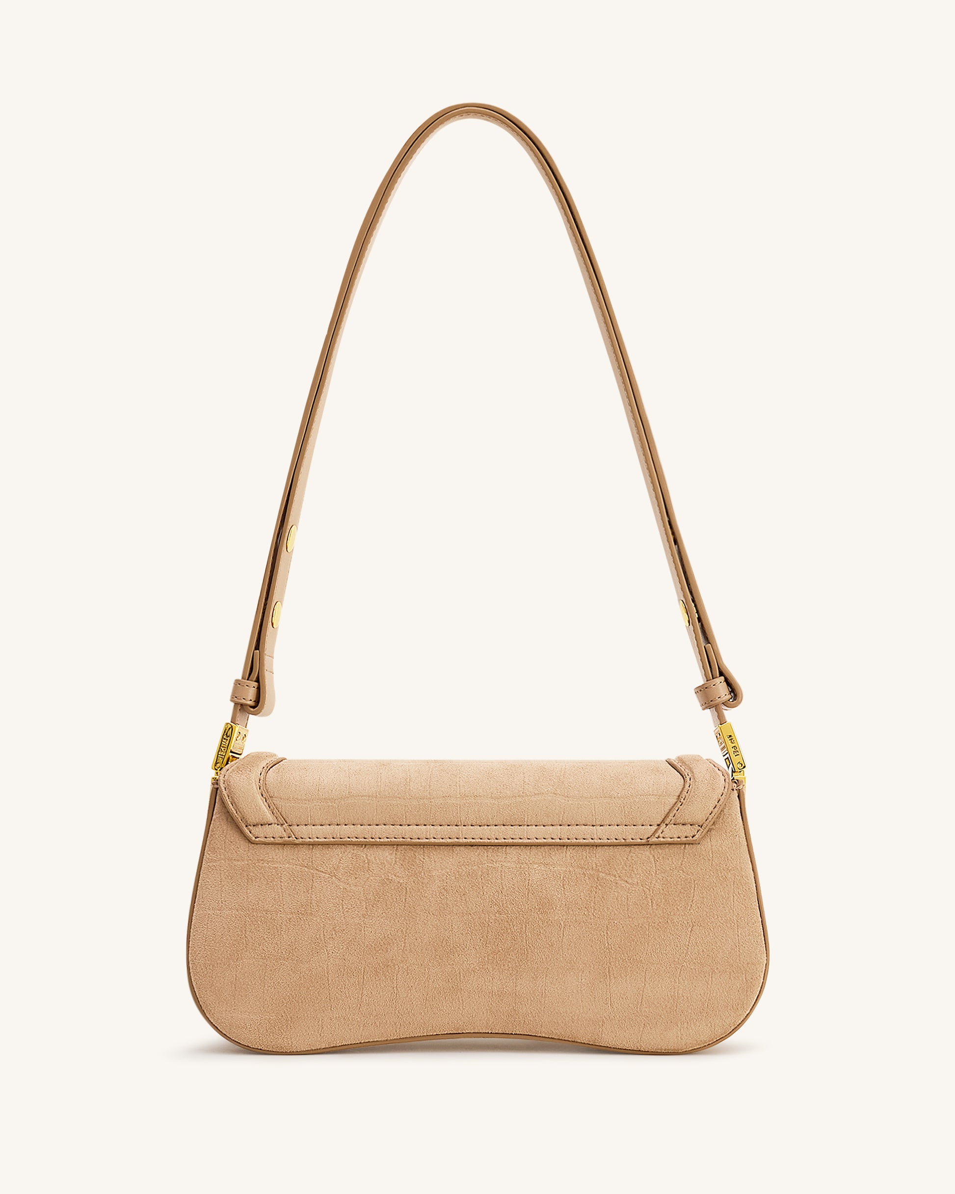 Joy Croc-Embossed Faux Suede Shoulder Bag - Beige
