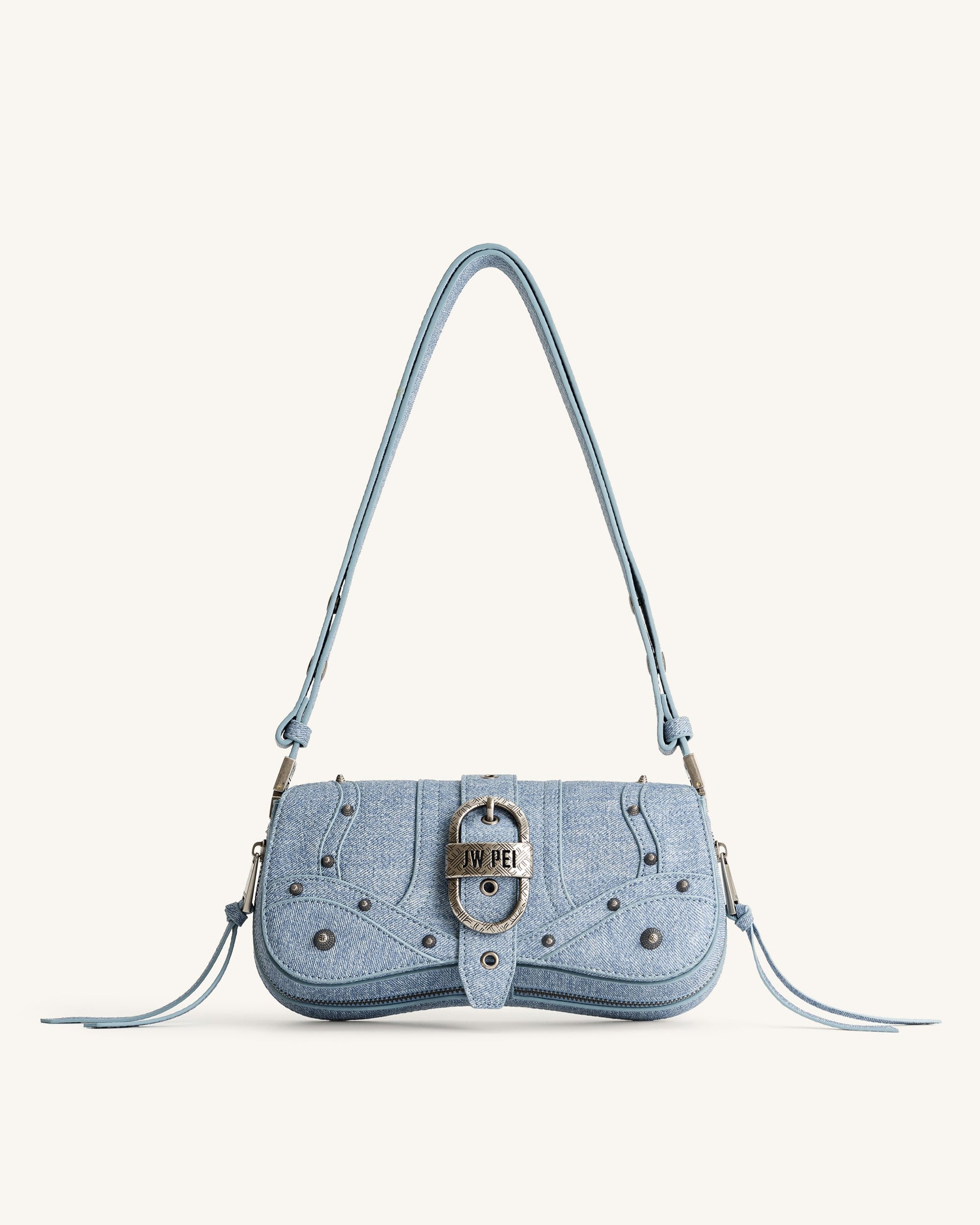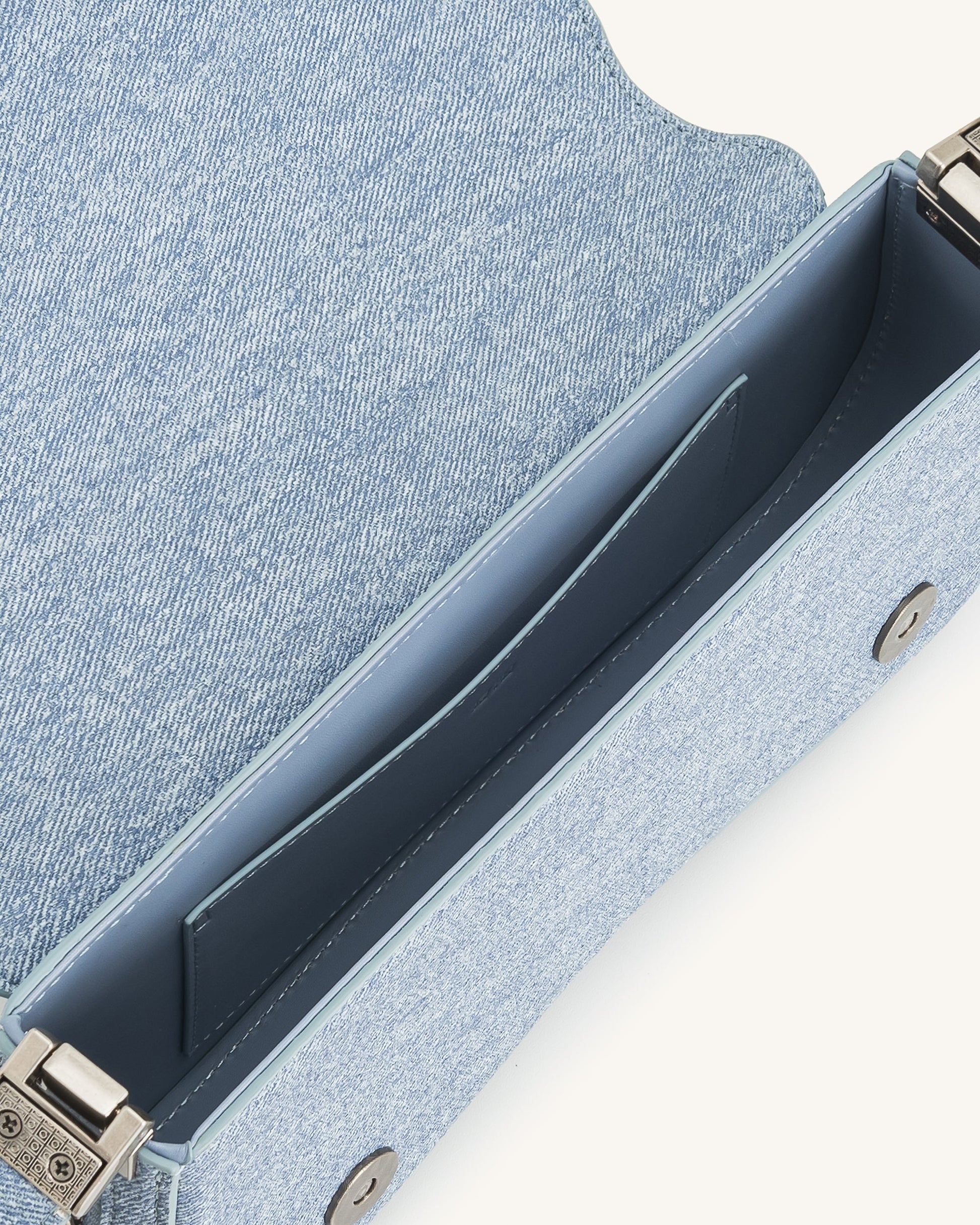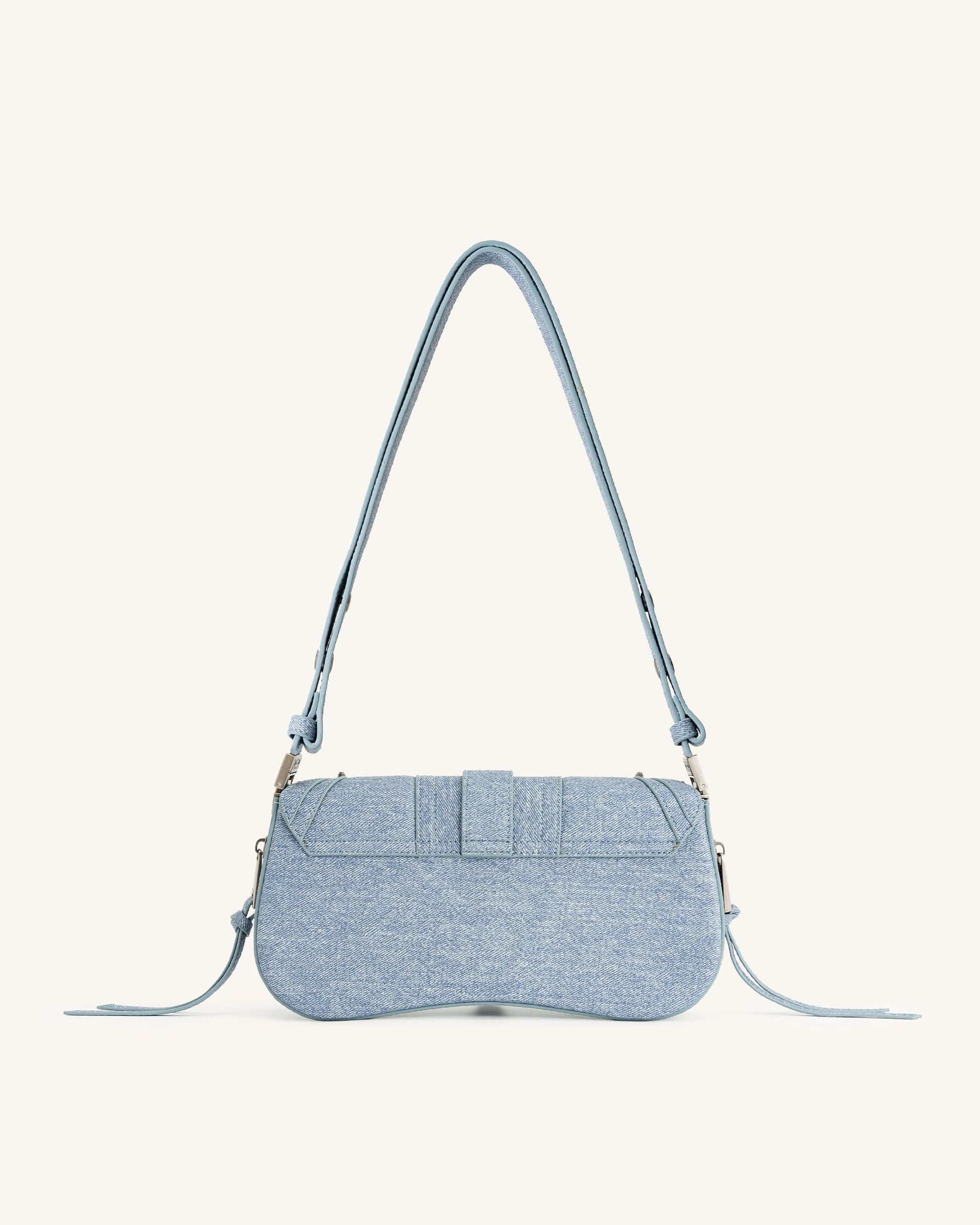 Joy Denim Embossed Curved Shoulder Bag - Blue