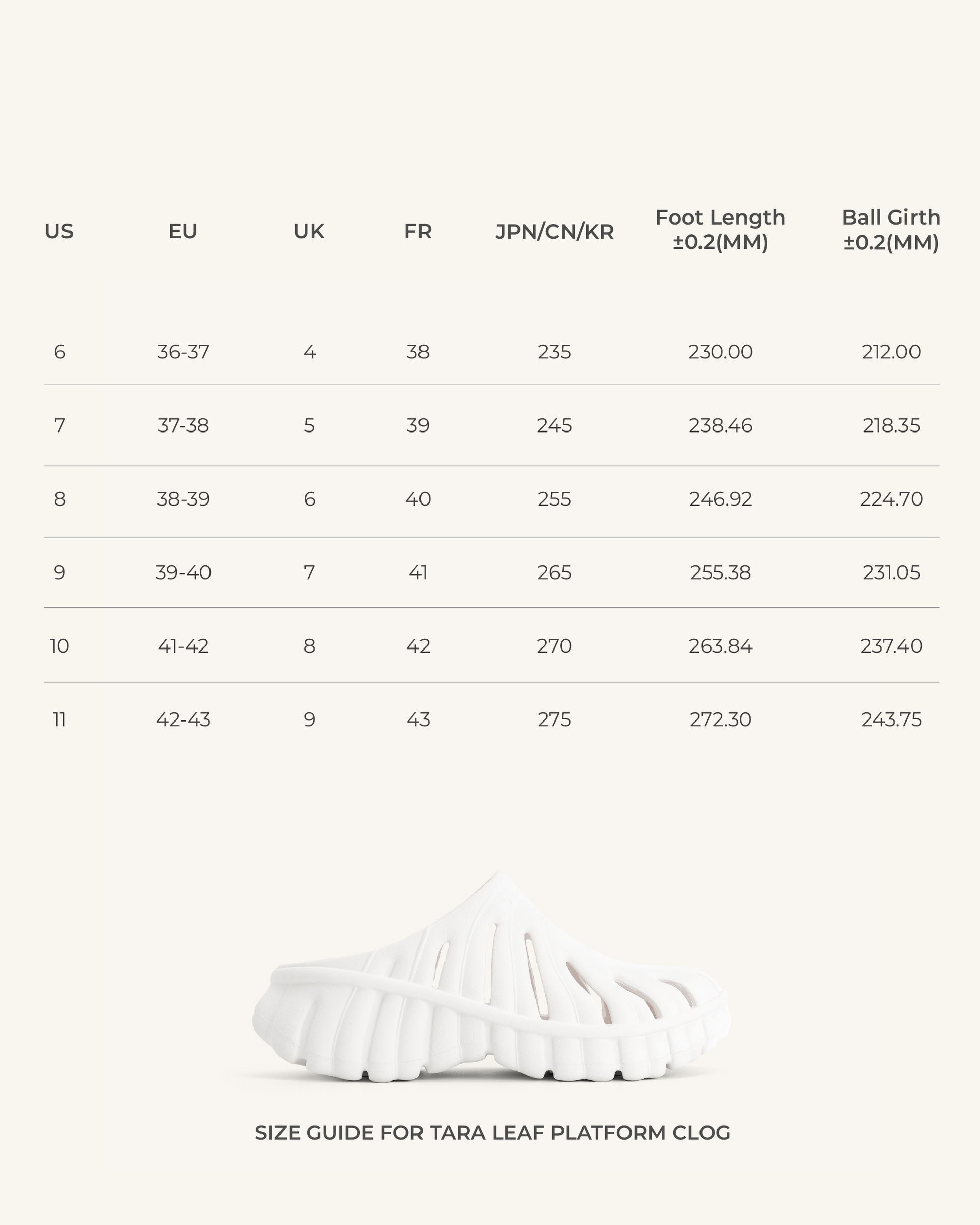 US | EU | UK | JPN/CN/KR | Foot Length±0.2 (CM) |