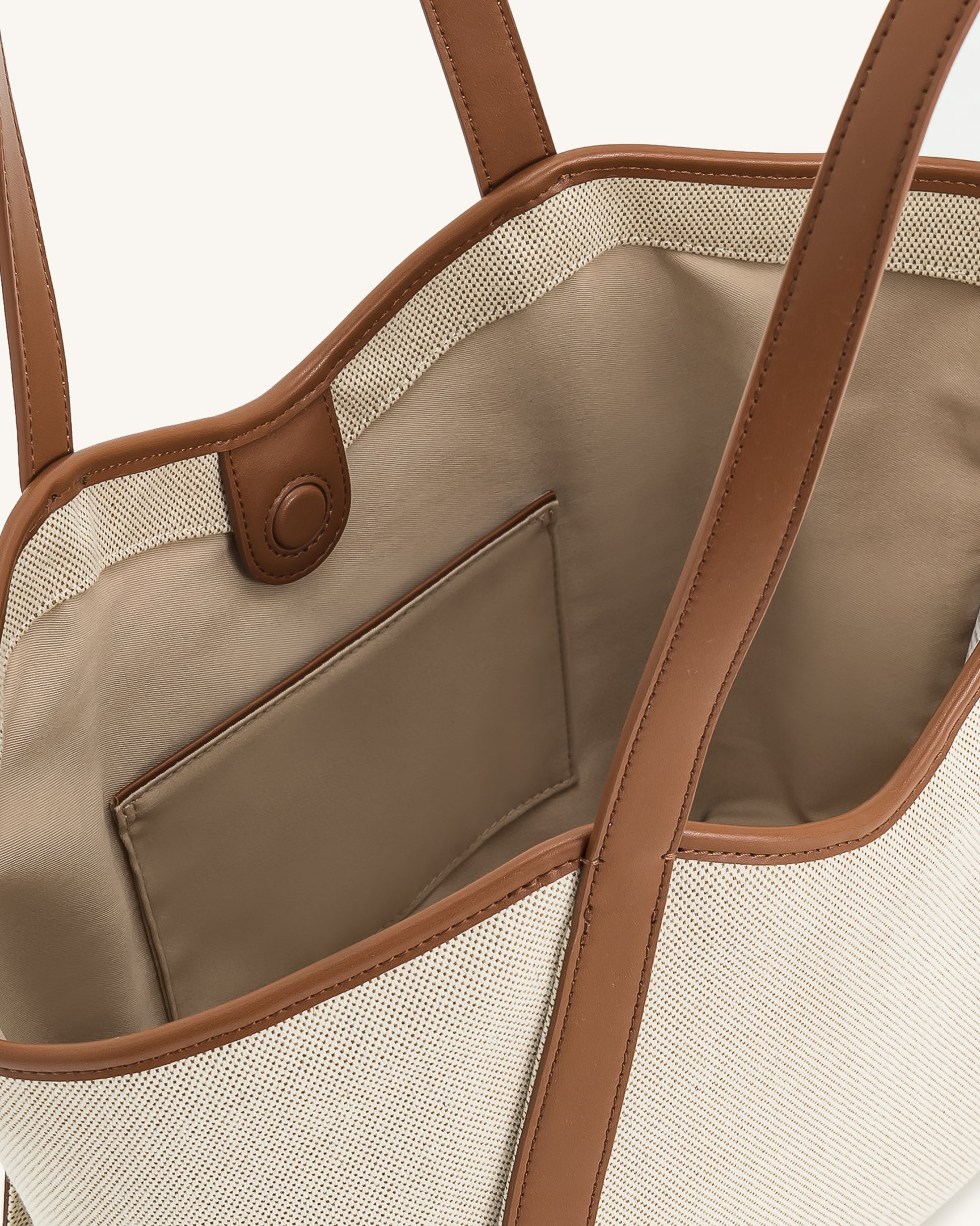 Kiana Large Capacity Tote Bag - Brown Canvas