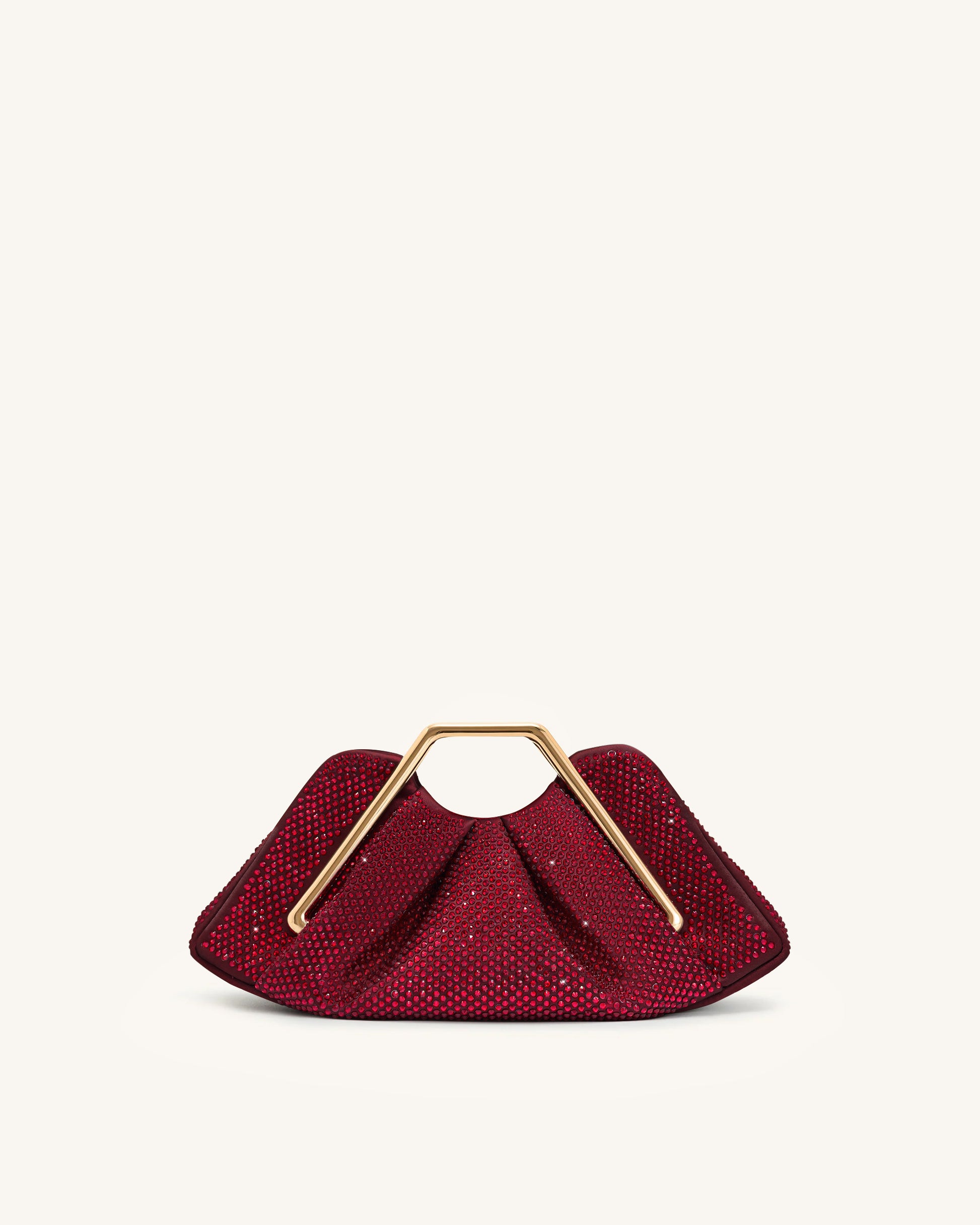 Lila Artificial Crystal Metal Frame Clutch - Red