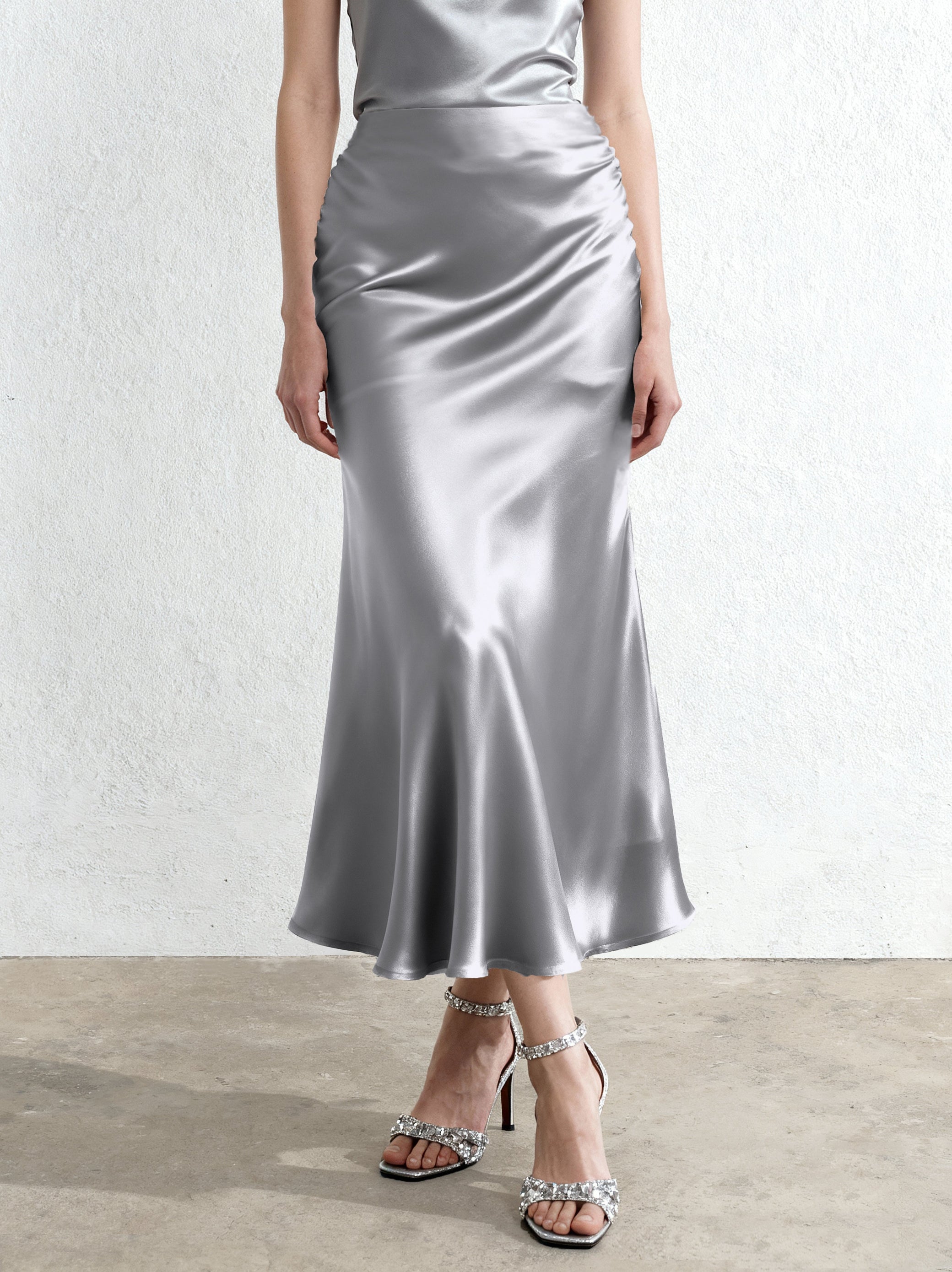 Liquid Satin Mermaid Maxi Skirt - Silver
