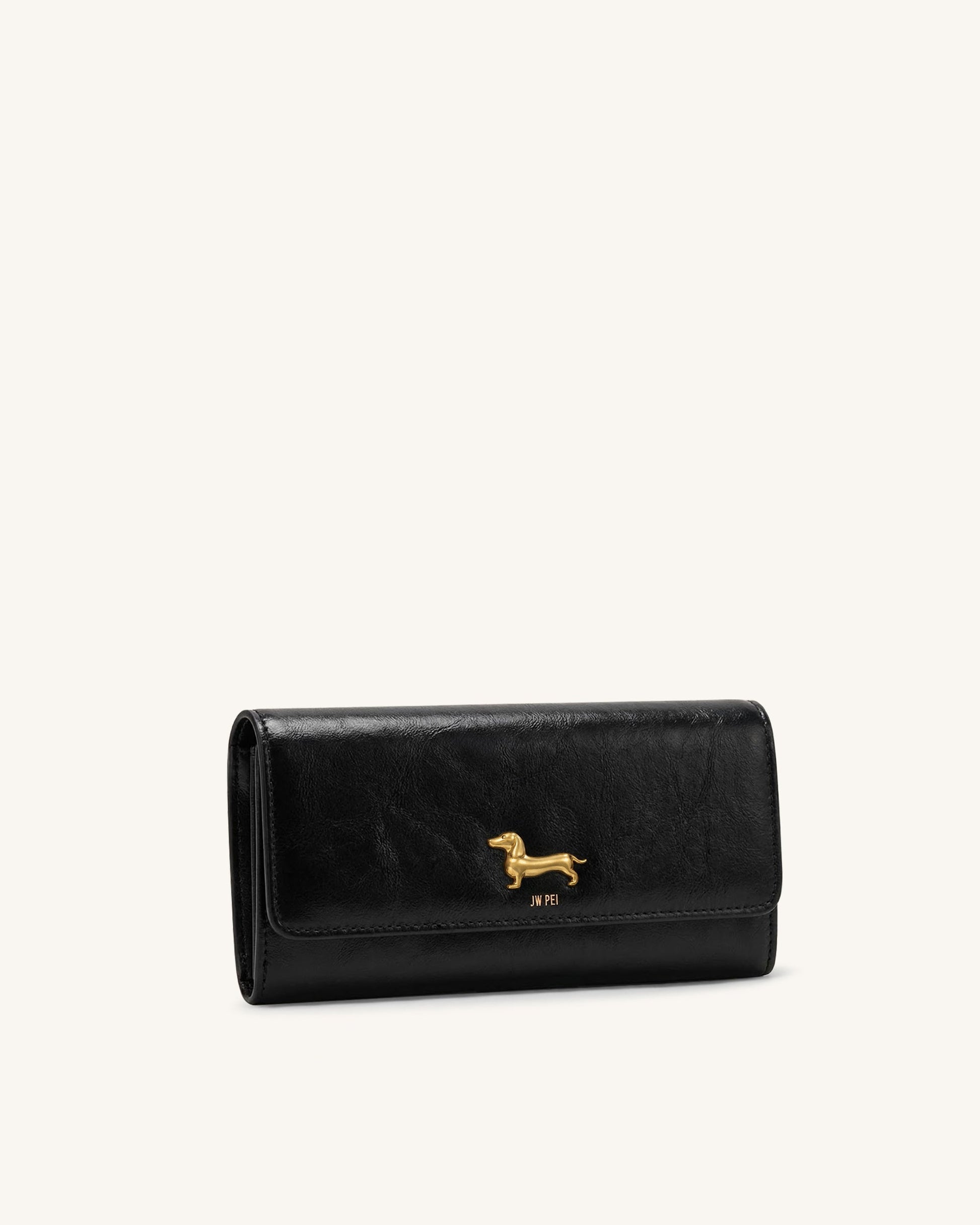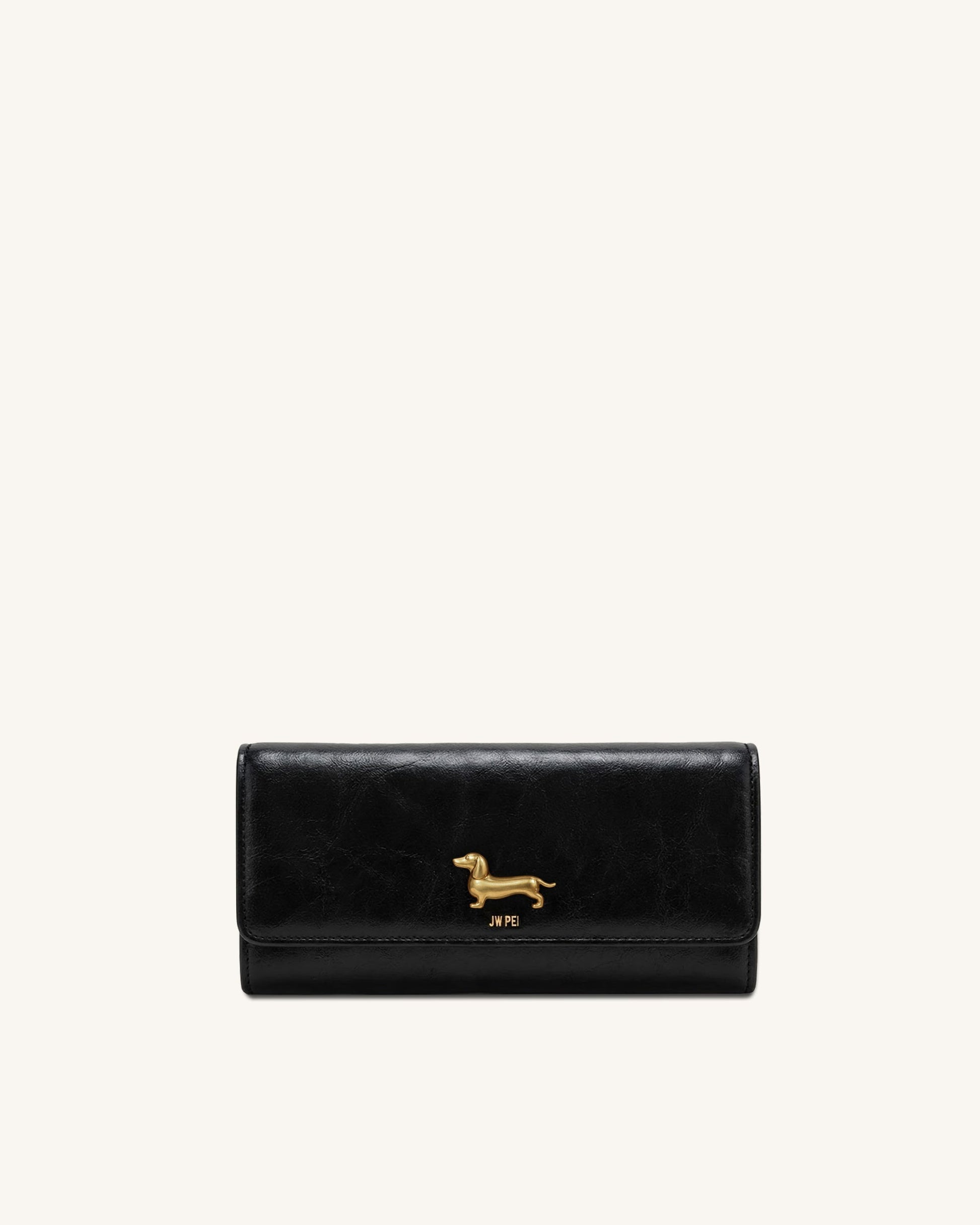 Maeve Dachshund Metal Emblem Flap Long Wallet - Black