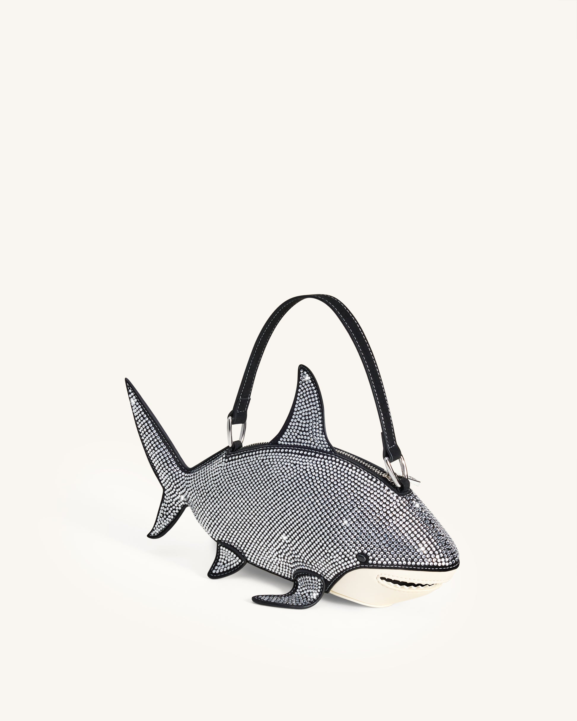 Nerys Artificial Crystal Shark Top Handle Bag - Black