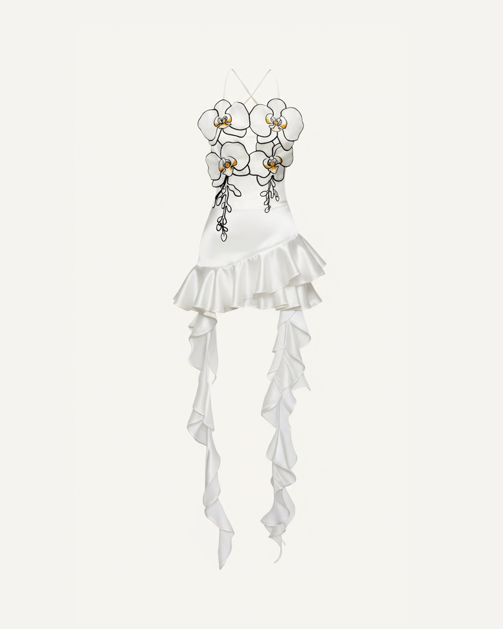 Orchid Embroidered Ruffle Hem Mini Dress - White