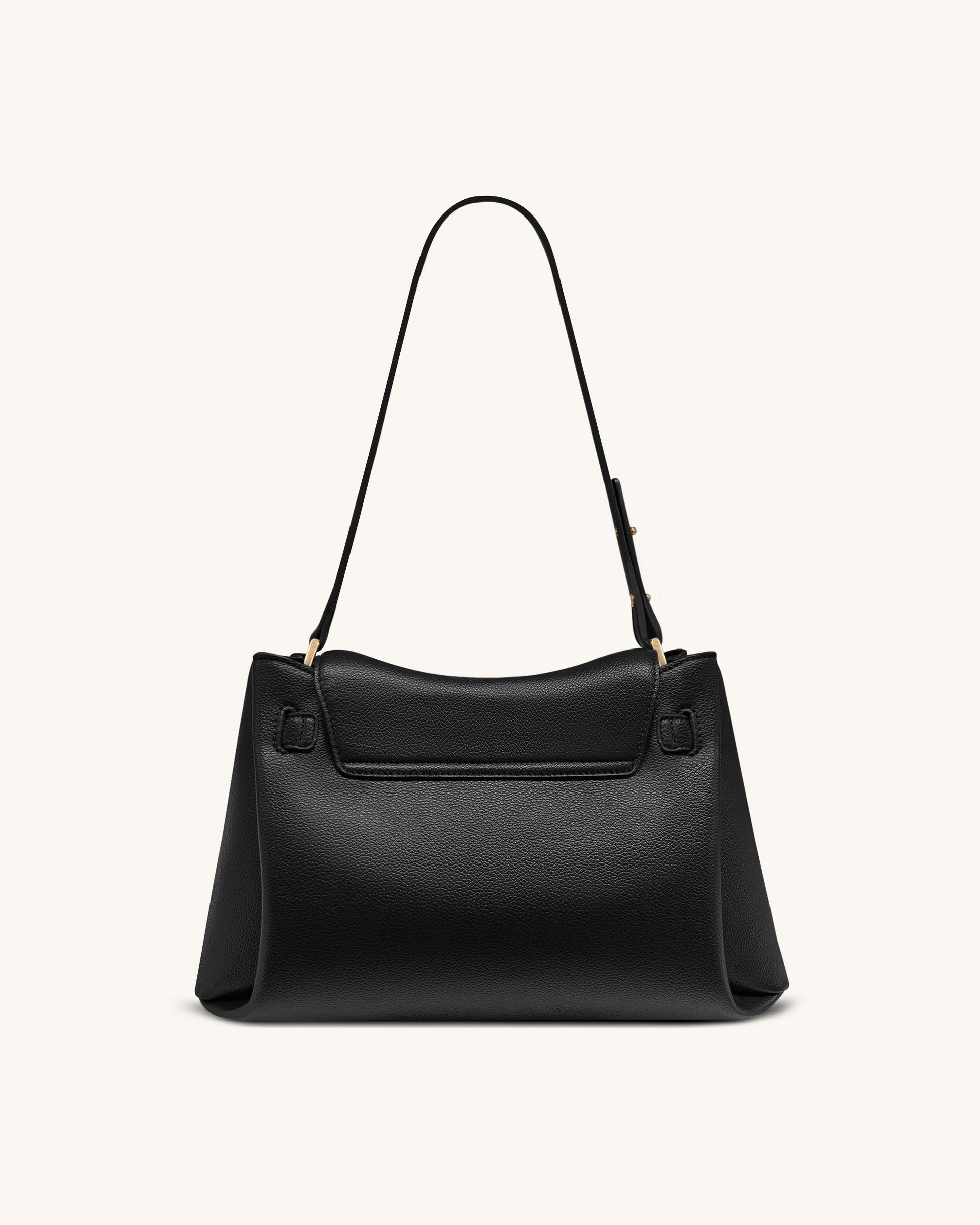 Rhea Pebbled Double Buckle Shoulder Bag - Black