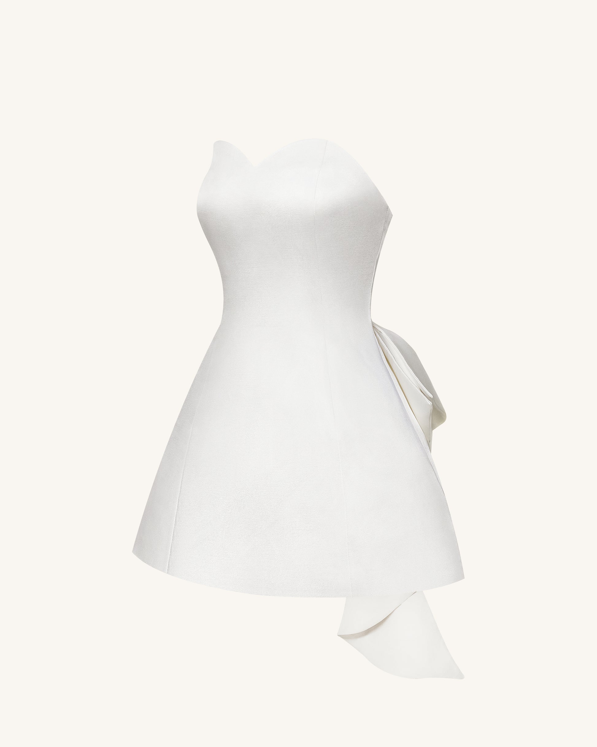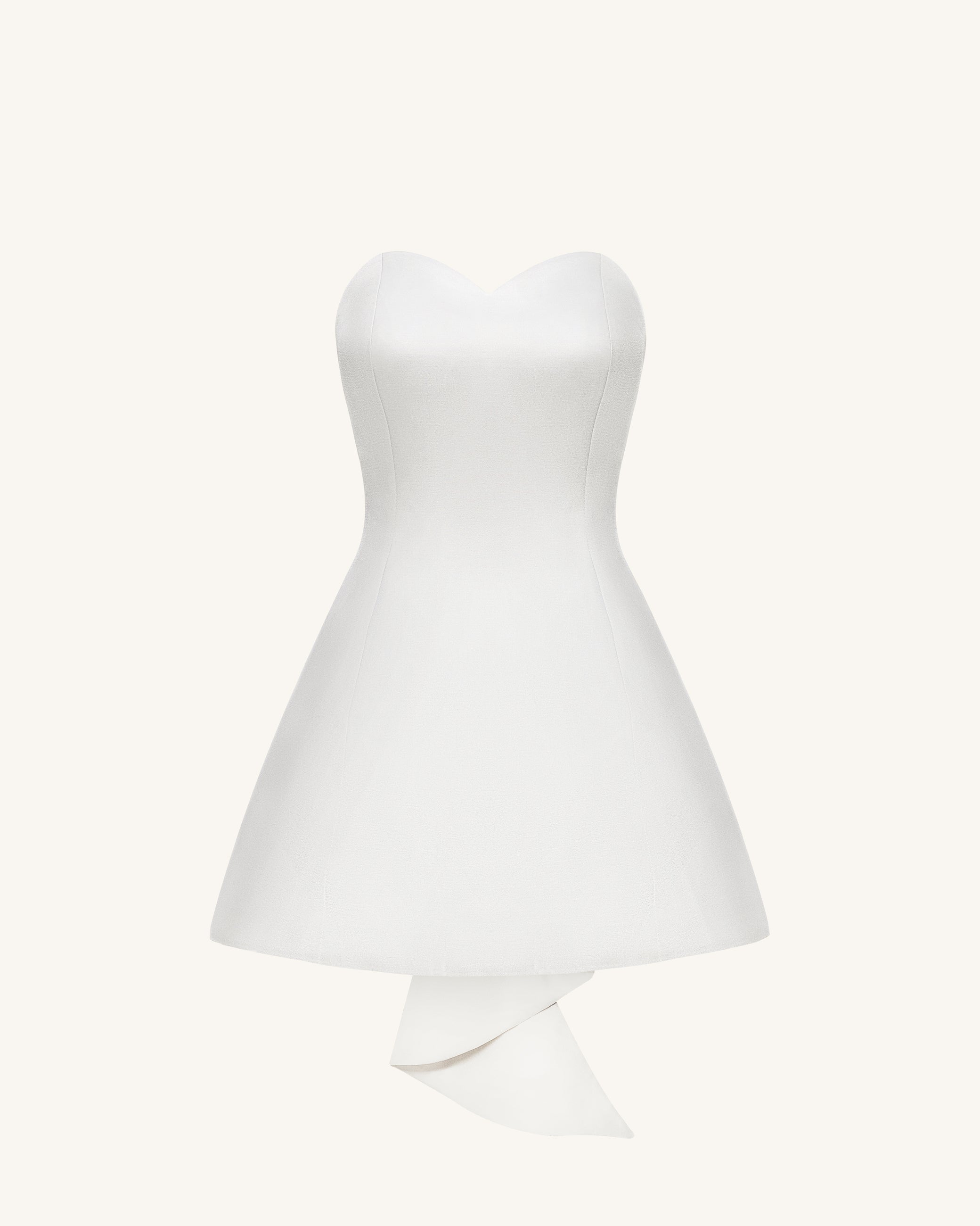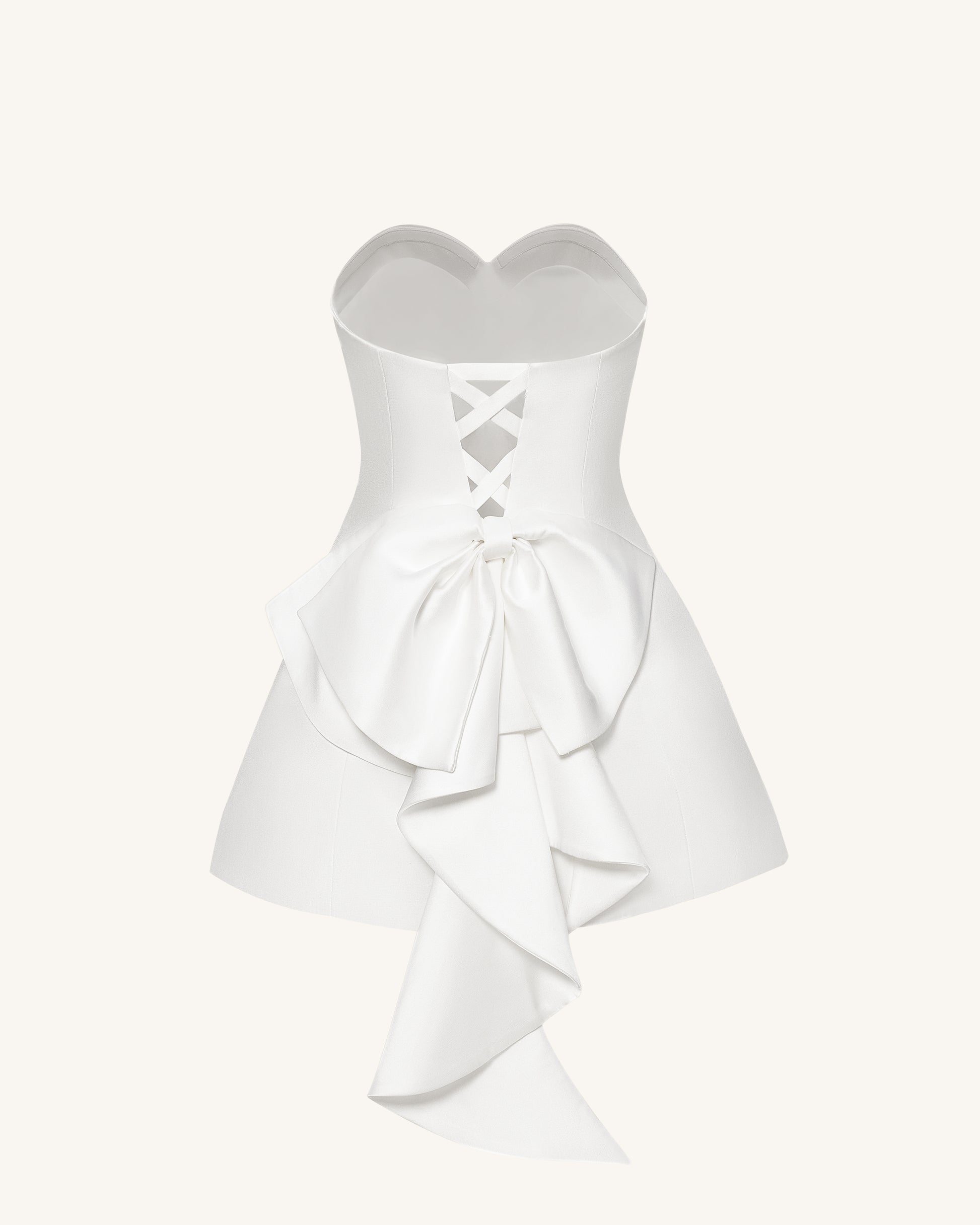 Satin Strapless Bow-Back Mini Dress - White