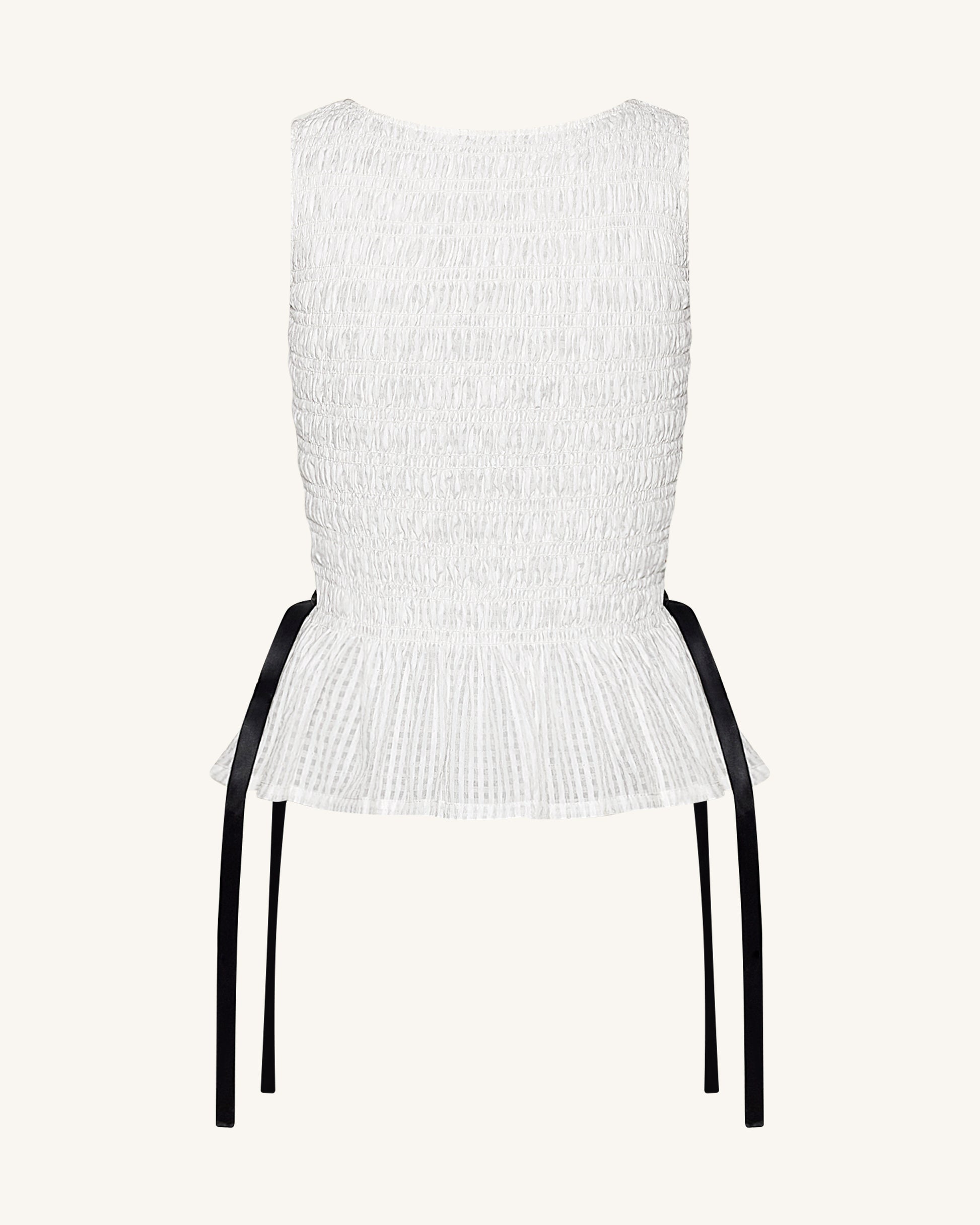 Smocked Peplum Sleeveless Top - White