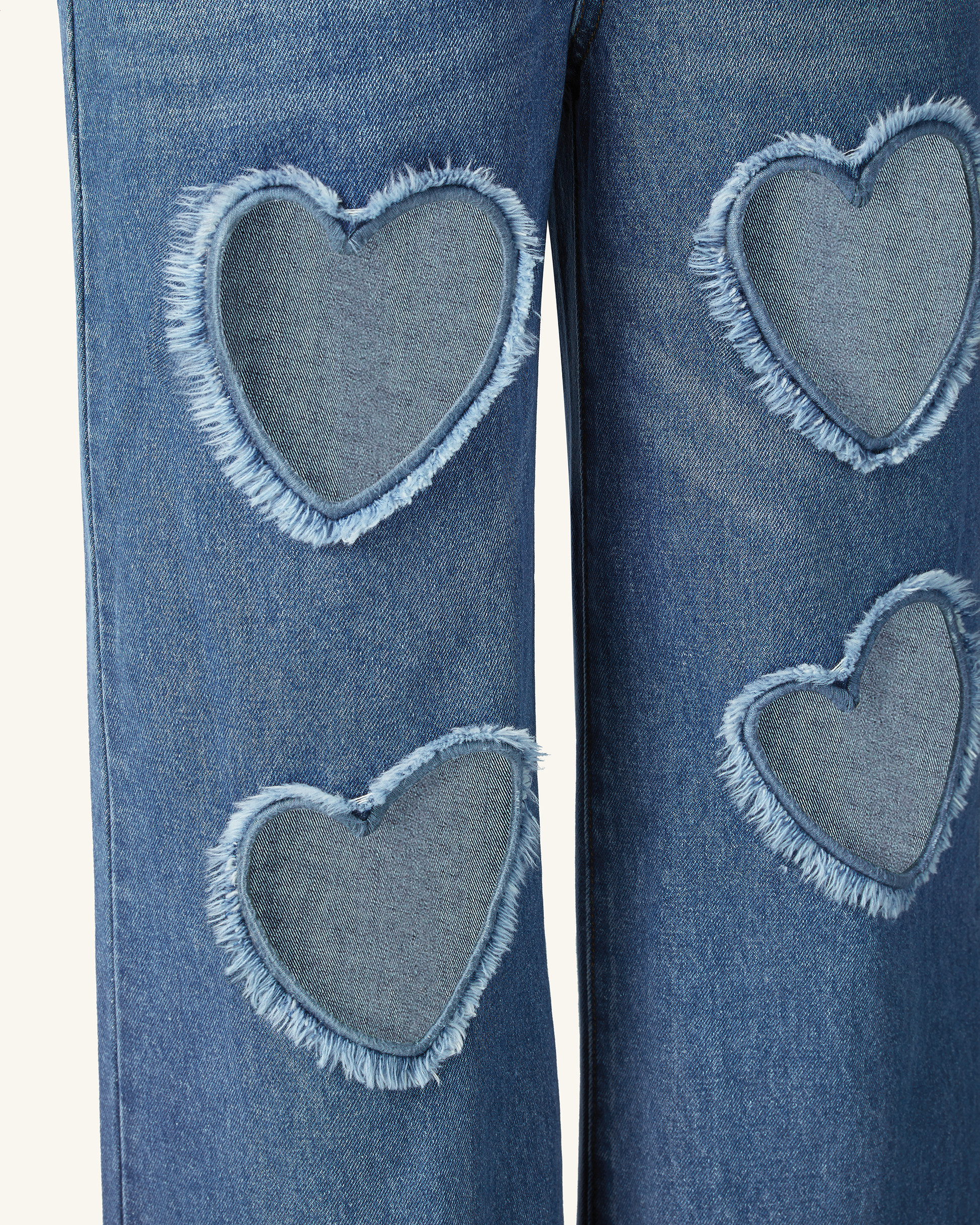 Sophia Embellished Heart Cut-Out Denim Jeans - Medium Blue