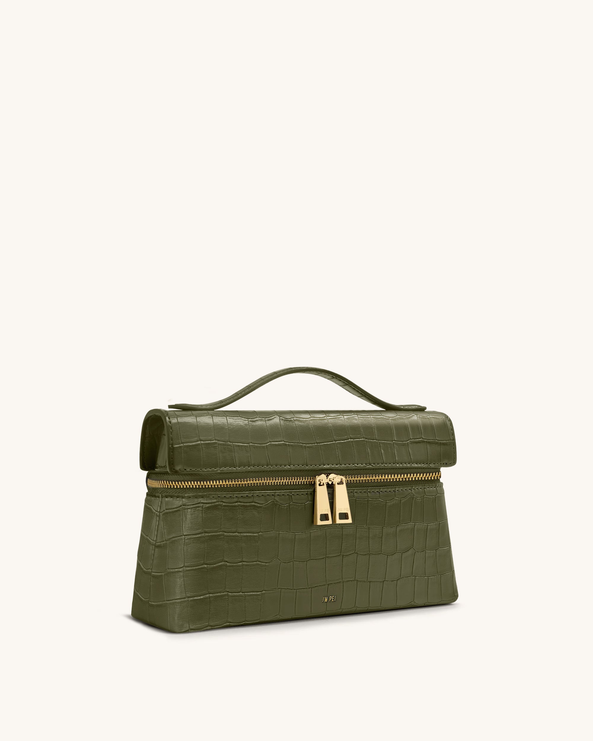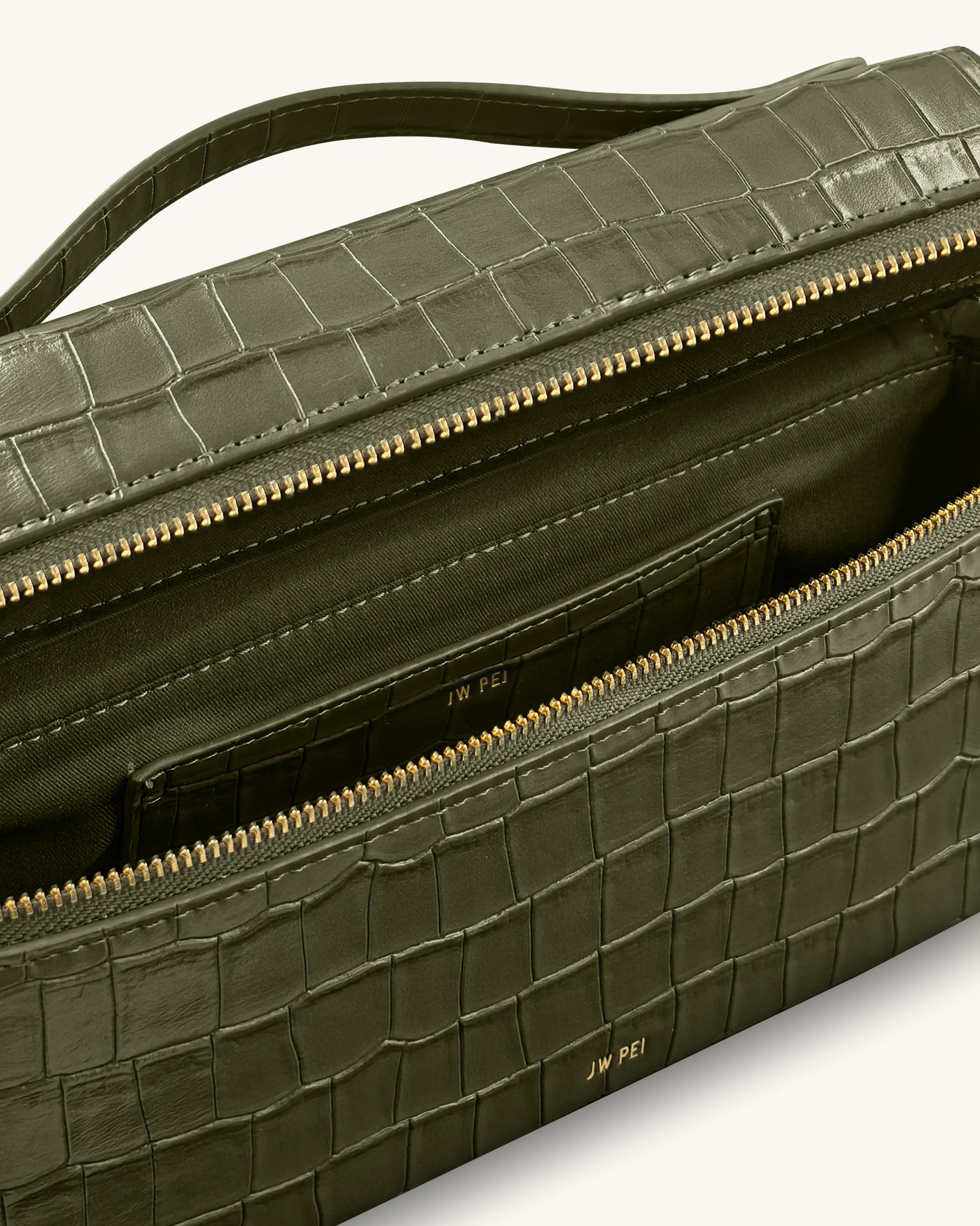 Thea Croc-Embossed Top Handle Bag - Olive Green