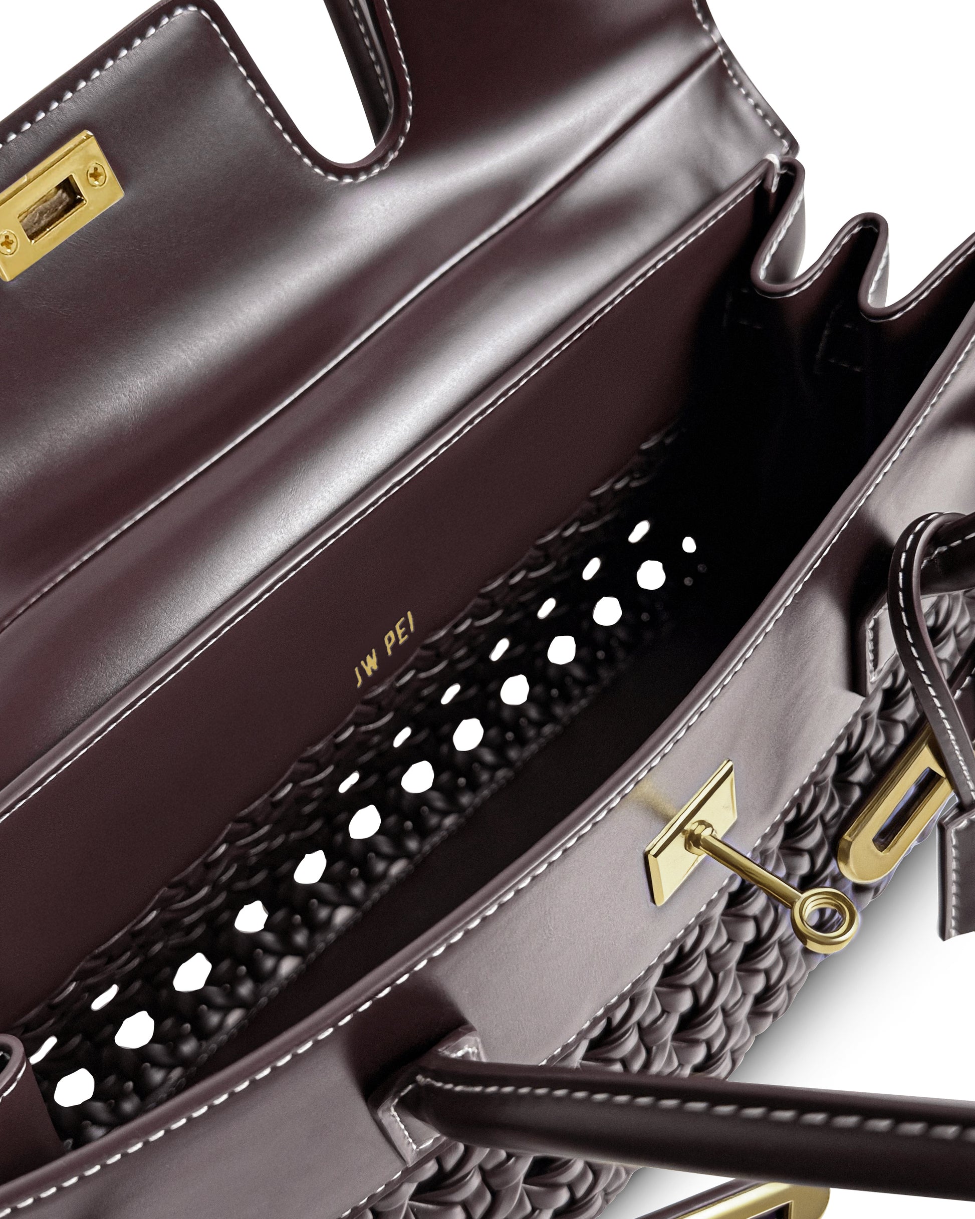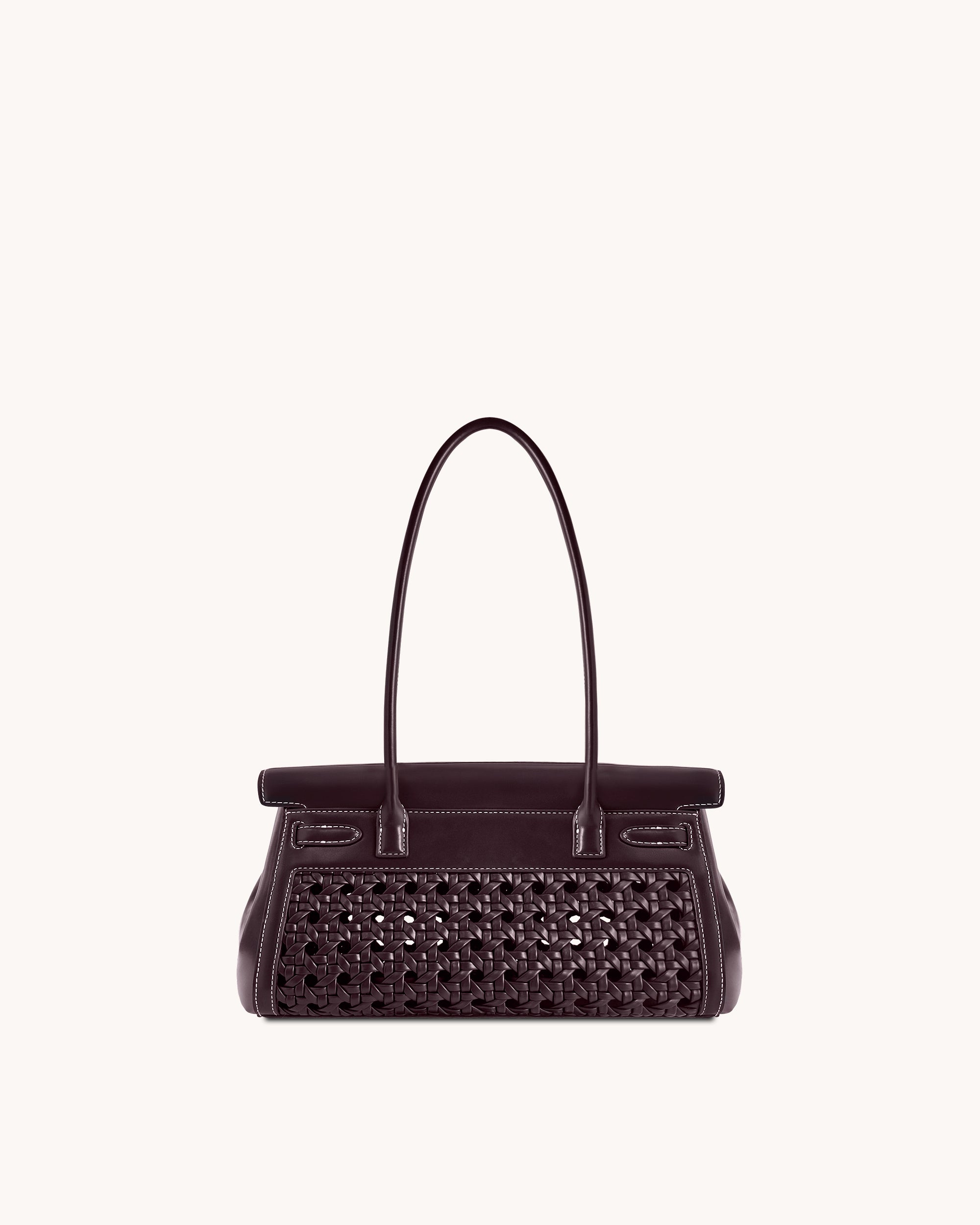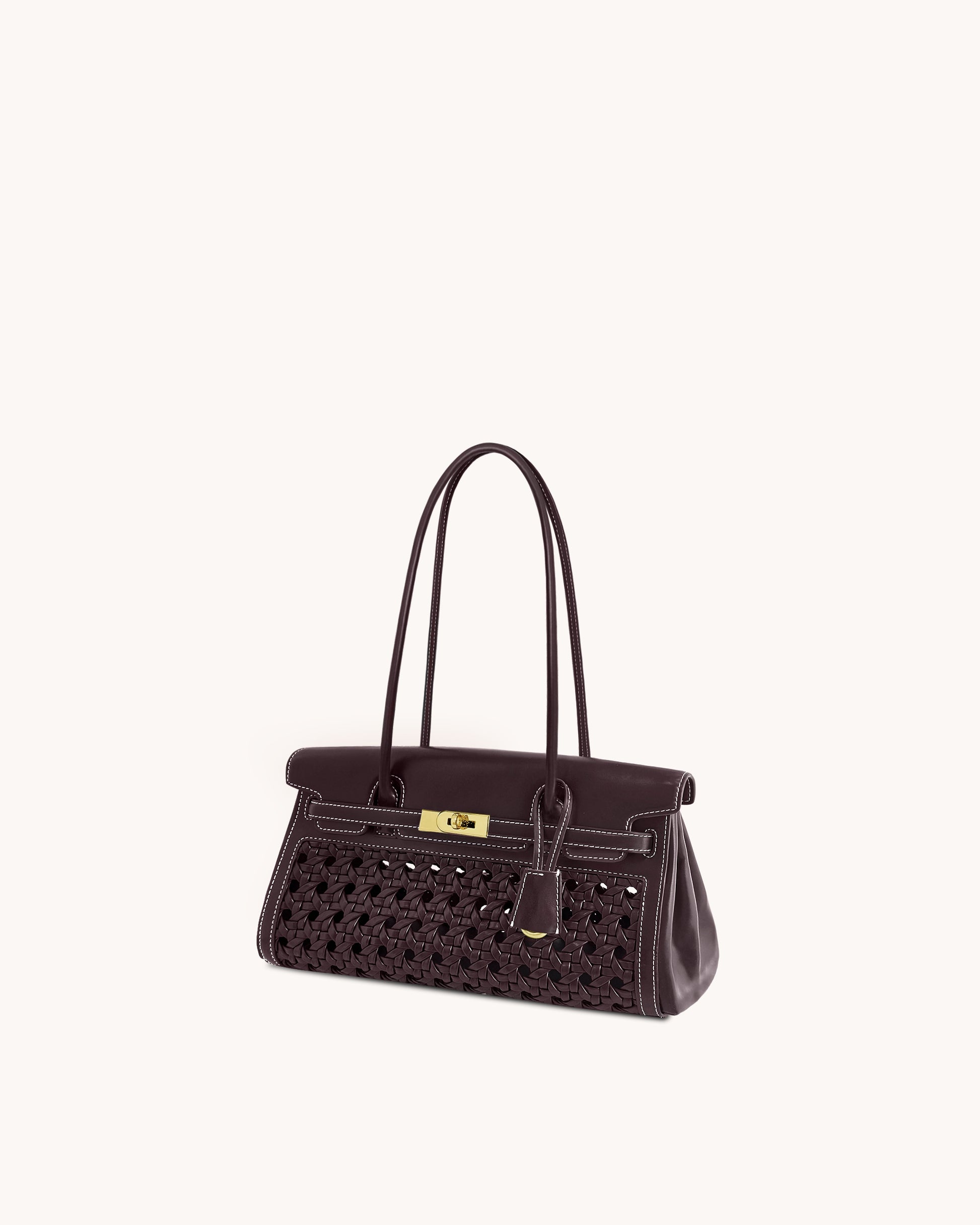 Elegant top handle bag with woven front and gold hardware. Spacious, structured, and stylish, perfect for daily or office use. Smooth texture and sophisticated look make it versatile and modern.