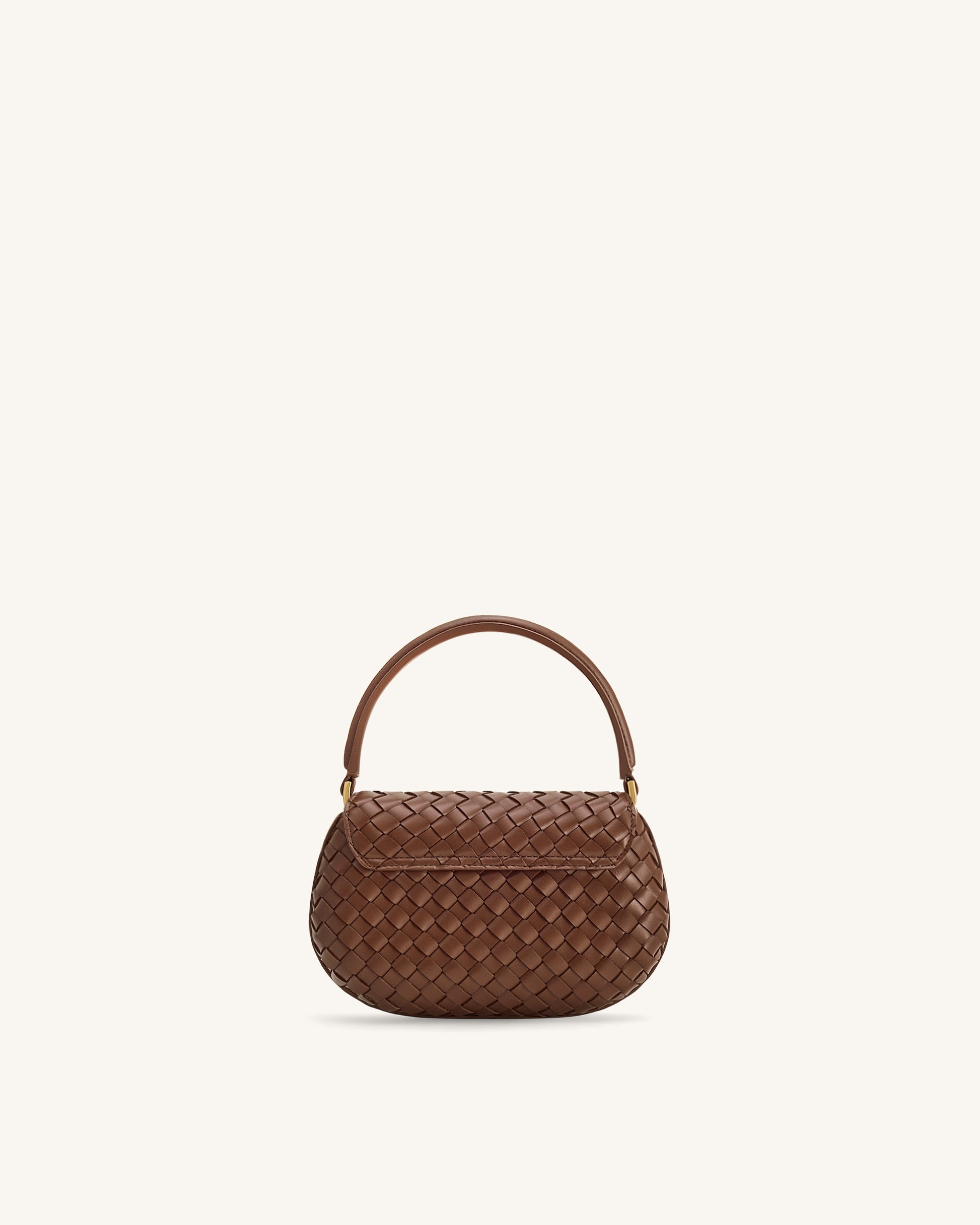 Zuri Hand Woven Round Top Handle Bag - Brown